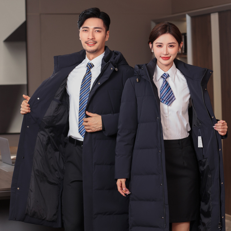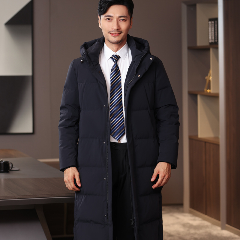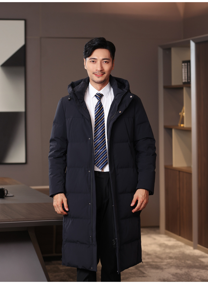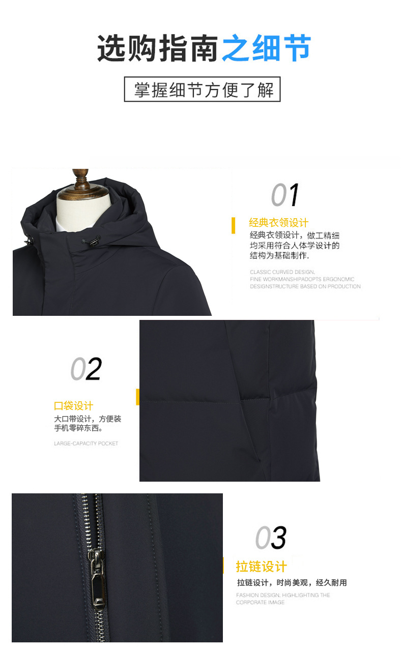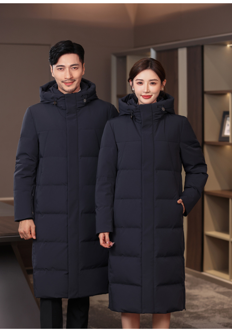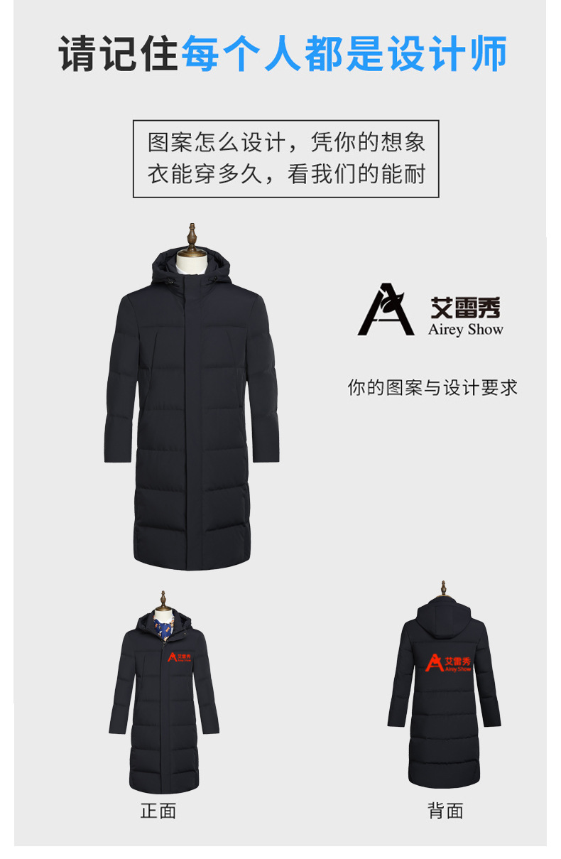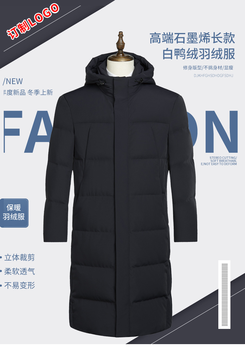 羽绒服定制logo白鹅绒高端石墨烯长款情侣加厚连帽羽绒外套工作服