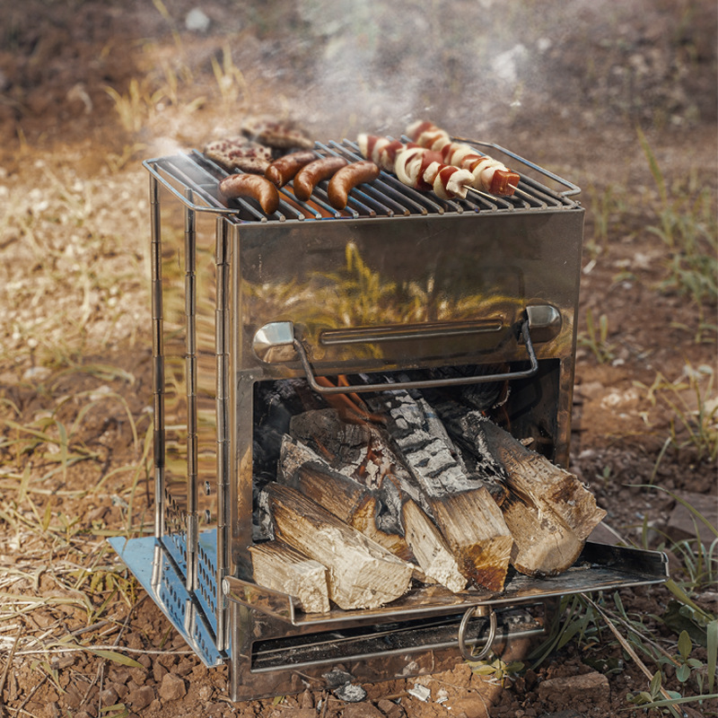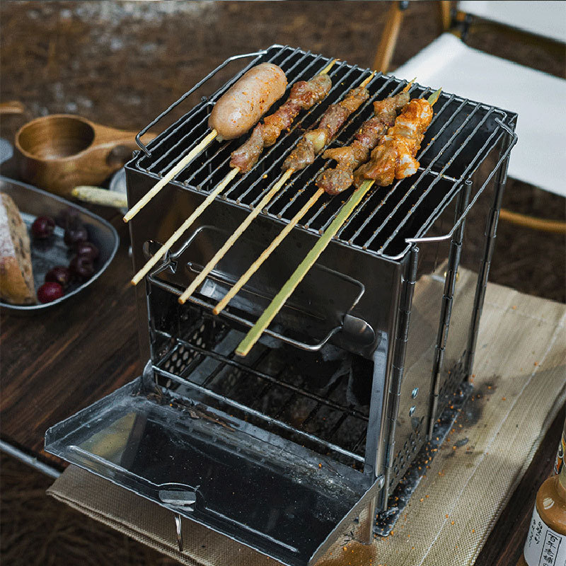 户外露营烧烤架迷你不锈钢烤炉BBQ野营便携折叠方形柴火炉炉具
