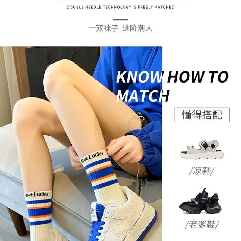 【爆款】袜子女士春秋中筒袜学生运动堆堆袜秋冬纯色潮袜日系批发