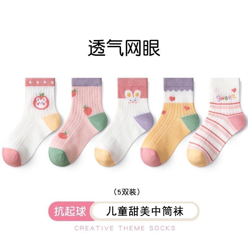 【工厂直销】儿童袜子夏季超薄女童中筒春夏网眼薄款透气运动袜