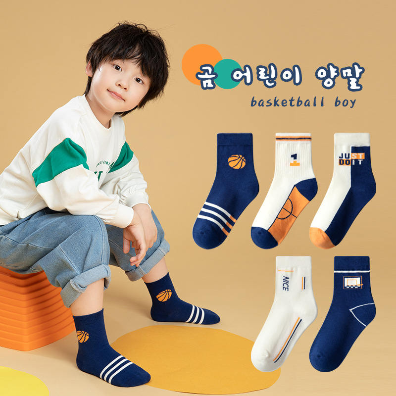 【诸暨袜子】儿童袜子男童中筒袜秋冬季宝宝纯色学院风运动袜批发