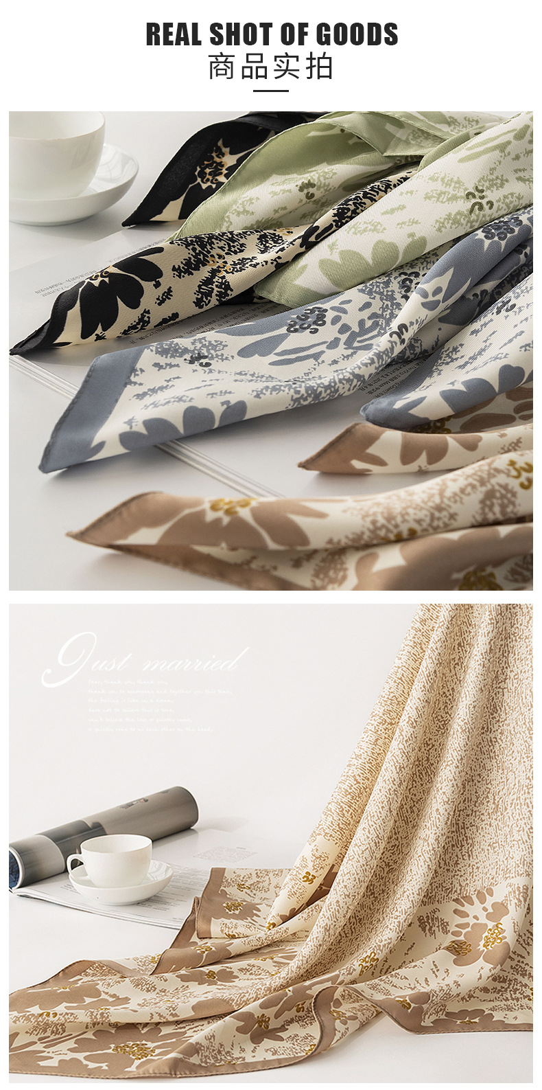 90*90CM小香风气质仿真丝丝巾春季搭配衬衫印花领巾小方巾女批发