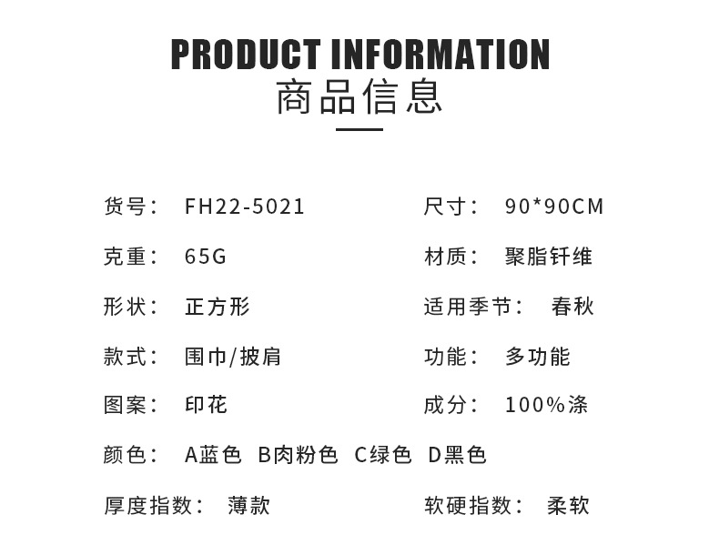 | 90 * 90cm(90*90CM) | USD $2.12 | 998 piece available |