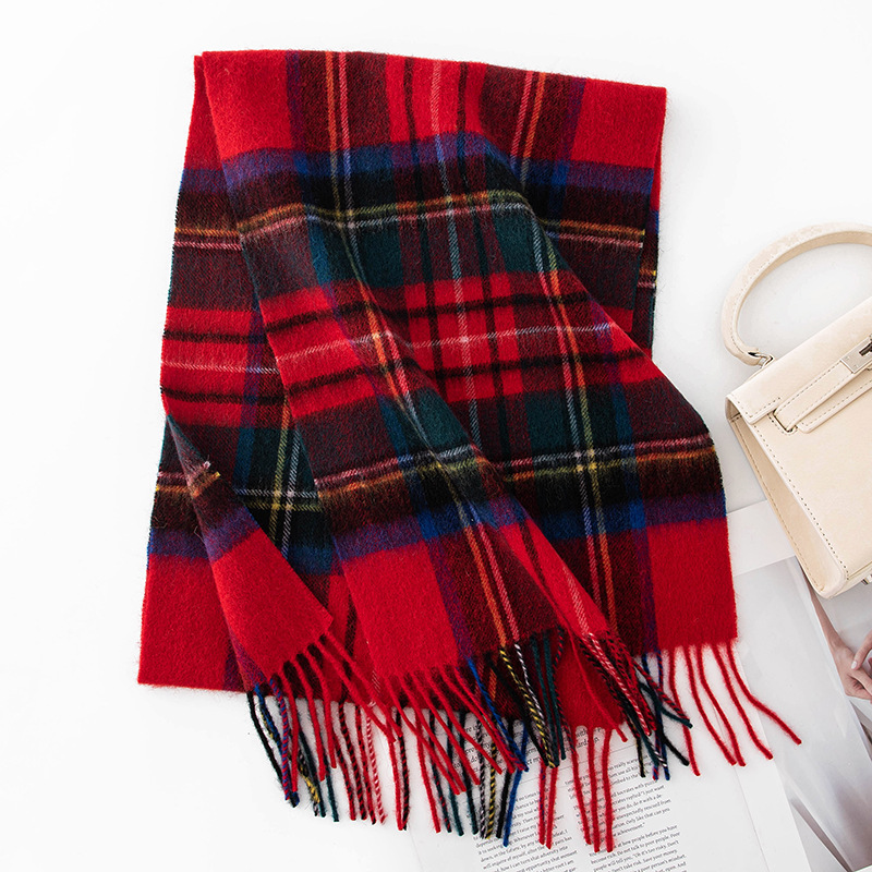 加厚秋冬格子100%羊毛围巾女高级感百搭流苏时尚保暖围脖舒适披肩