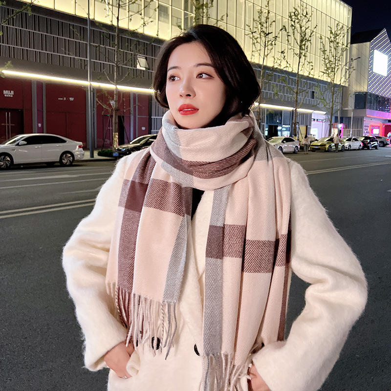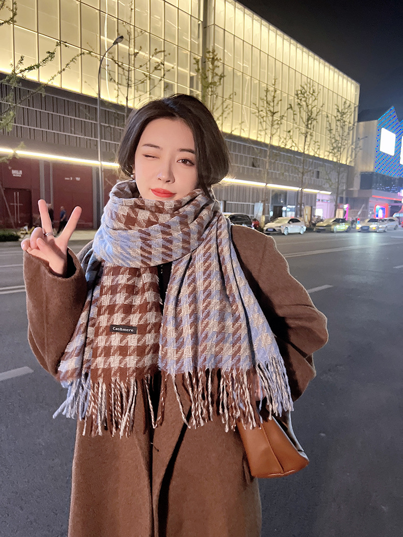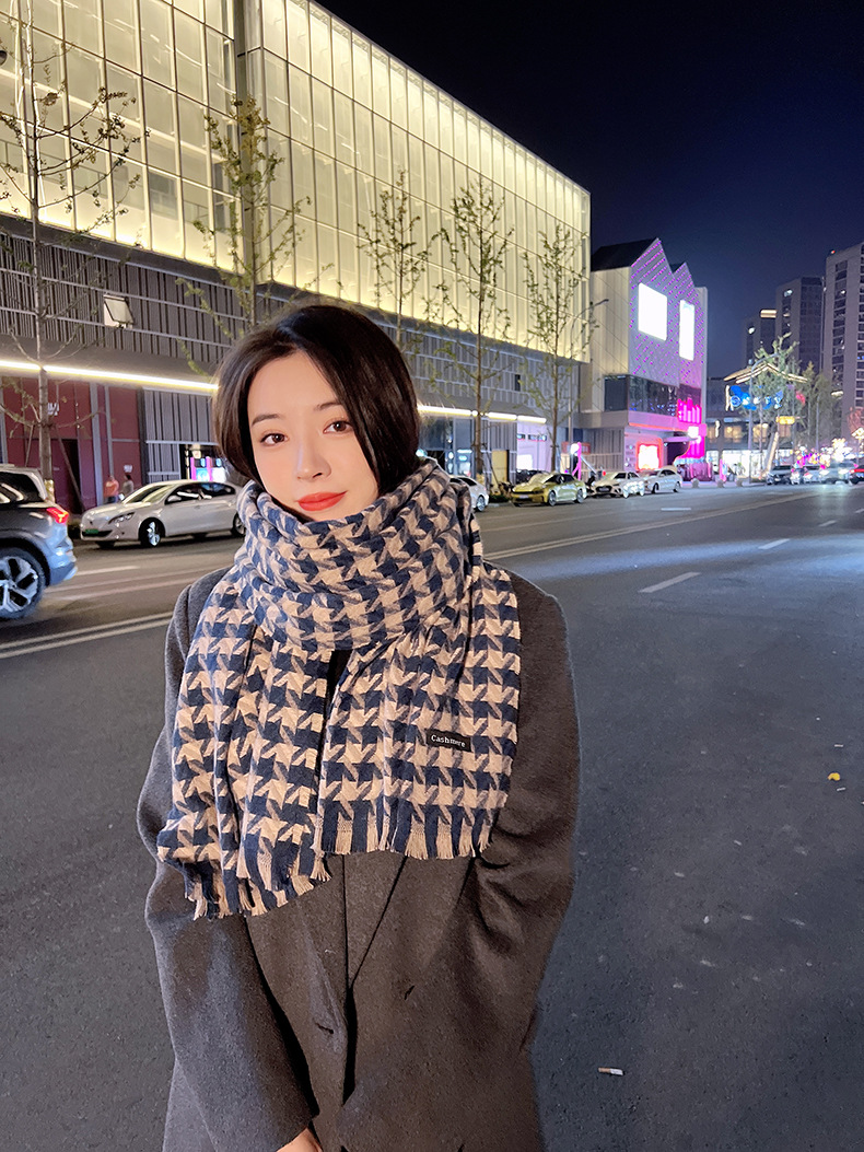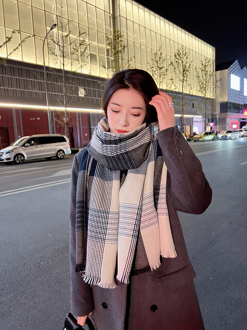 围巾女冬季高级感格子披肩2024新款秋百搭时尚围脖双面加厚潮两用