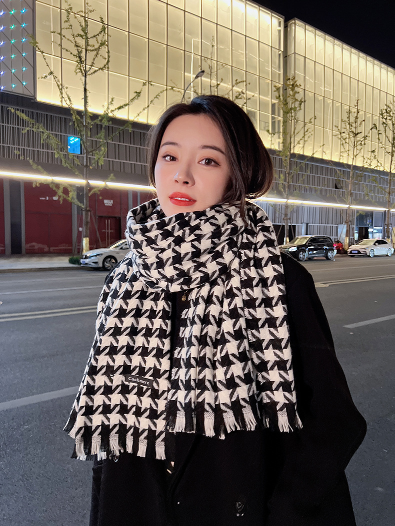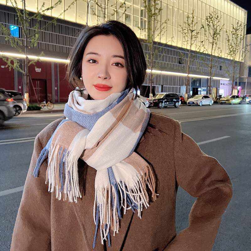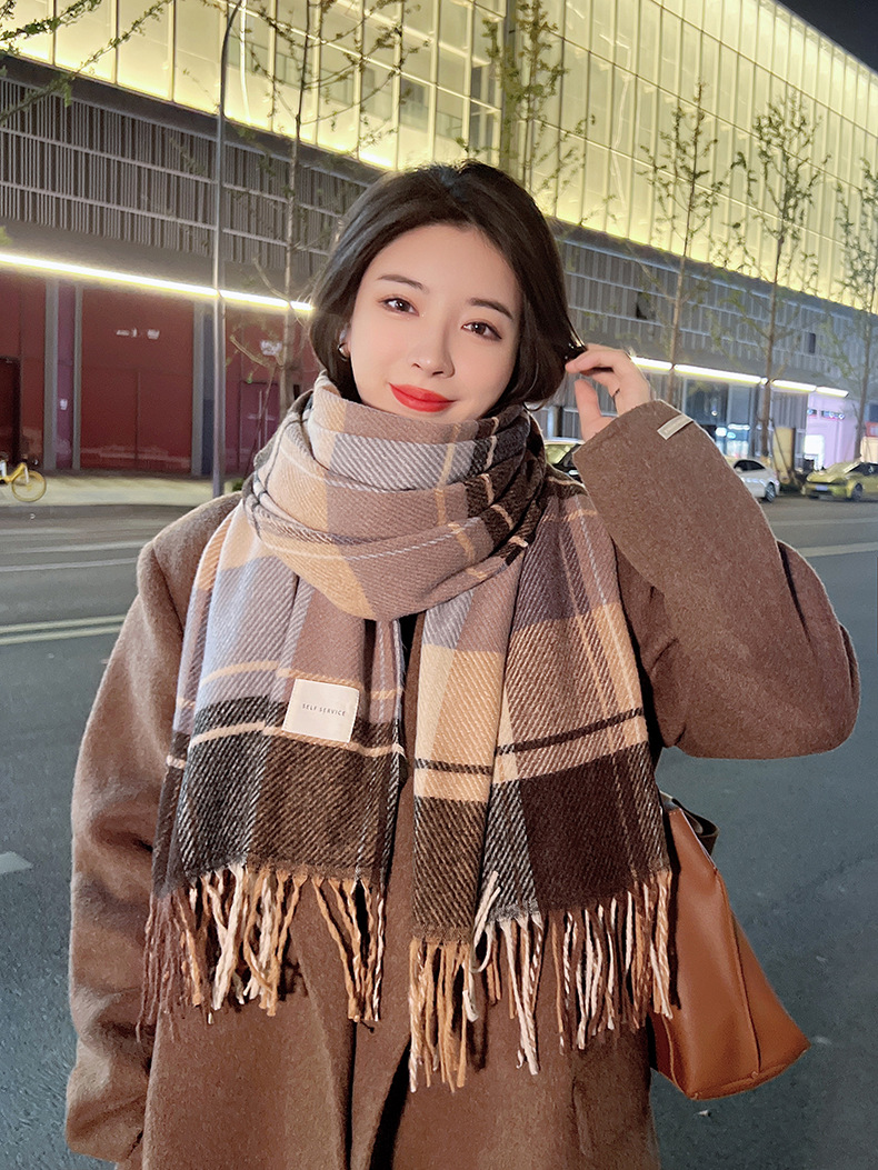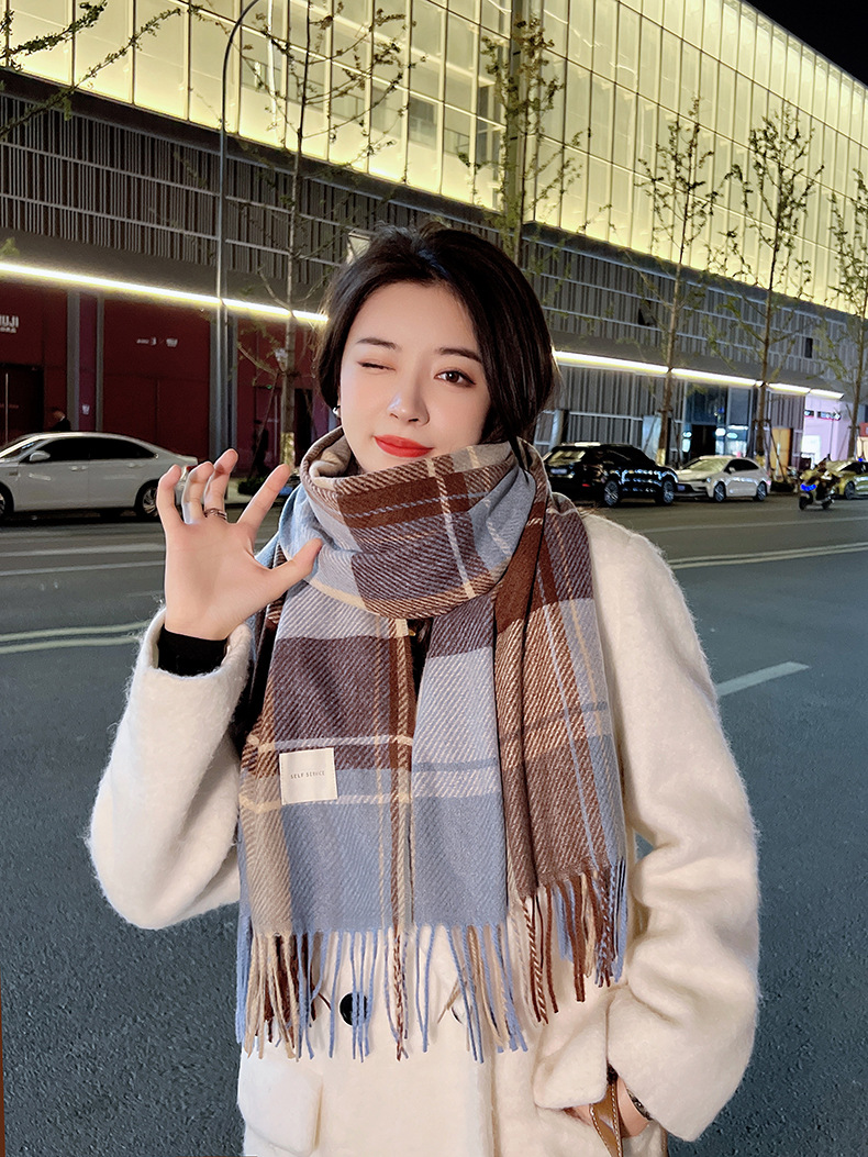 围巾女冬季高级感格子披肩2024新款秋百搭时尚围脖双面加厚潮两用