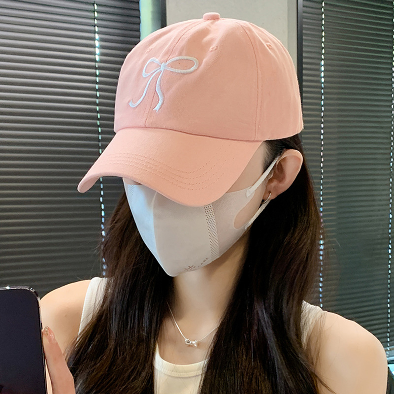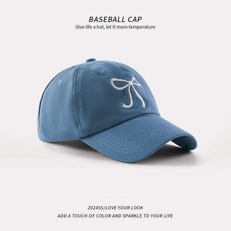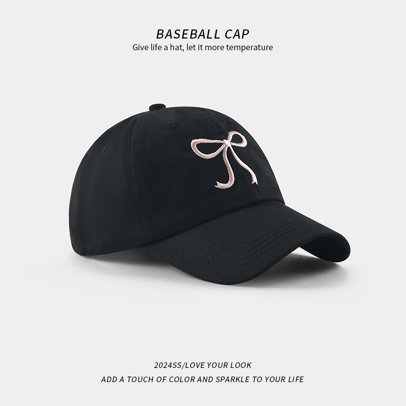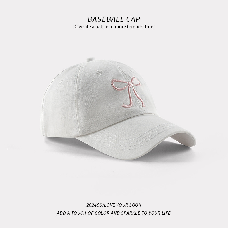 蝴蝶结刺绣鸭舌帽女大脸百搭显脸小2024新款刺绣百搭鸭舌帽春帽子