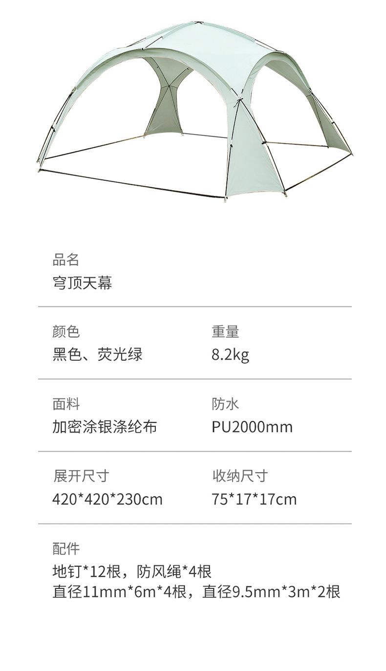 穹顶天幕帐篷户外大遮阳棚露营野营防雨防晒防蚊便捷式折叠大容量