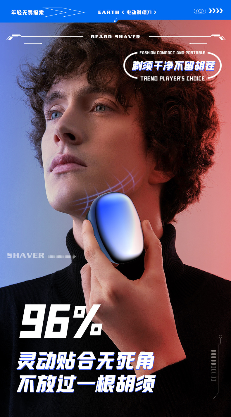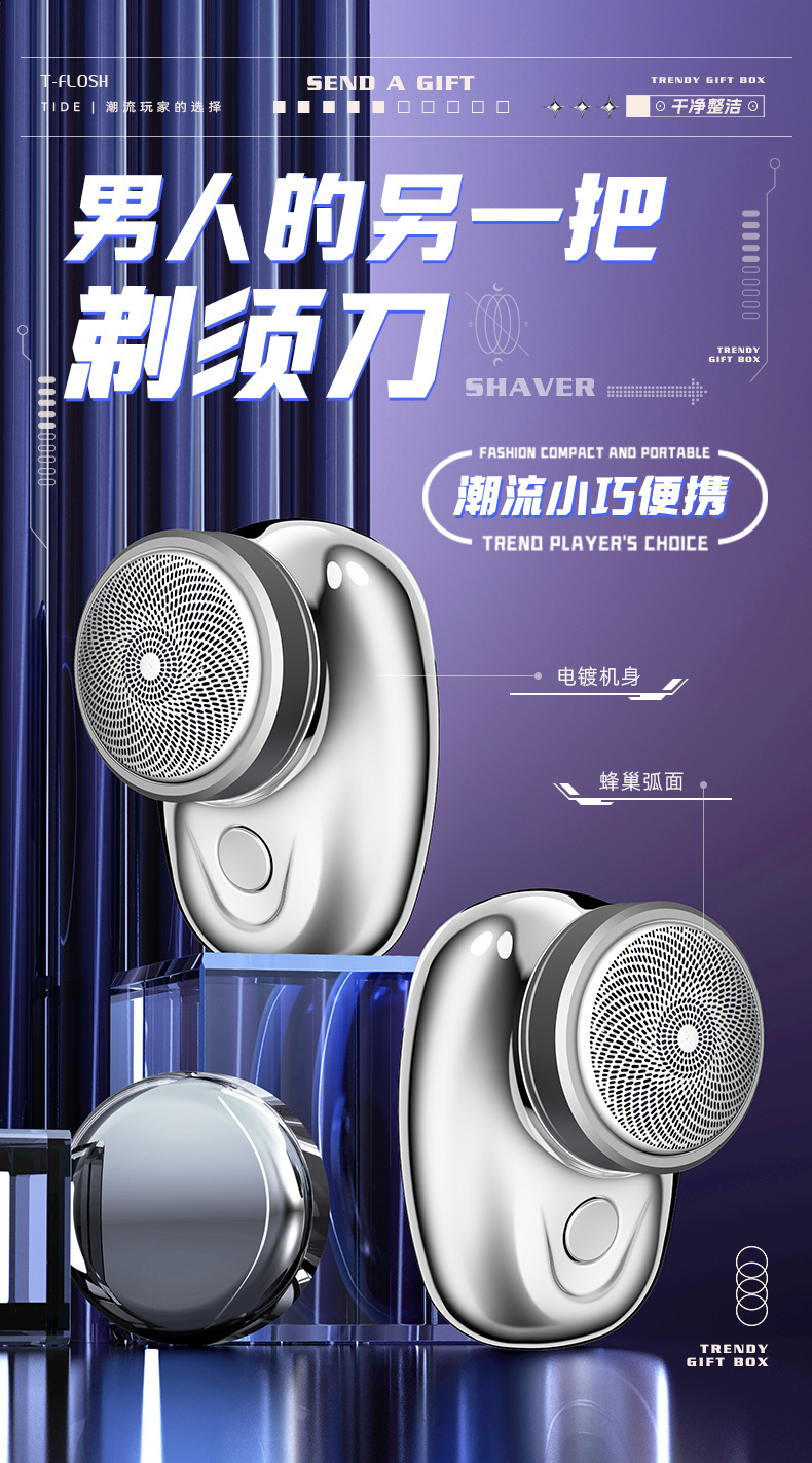2024新款迷你小钢炮剃须刀全身水洗便捷男士电动小型充电刮胡刀