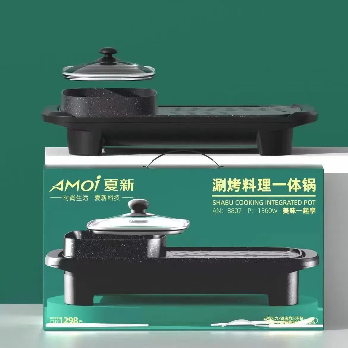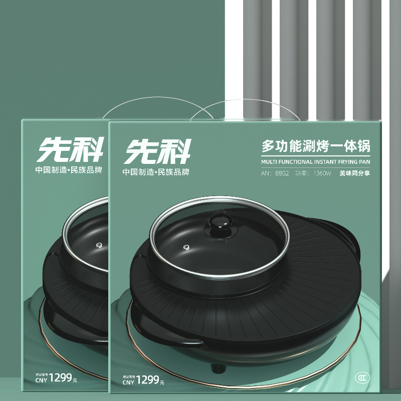 先科家用多功能涮烤一体锅长方形涮烤盘烤肉电火锅两用礼品批发