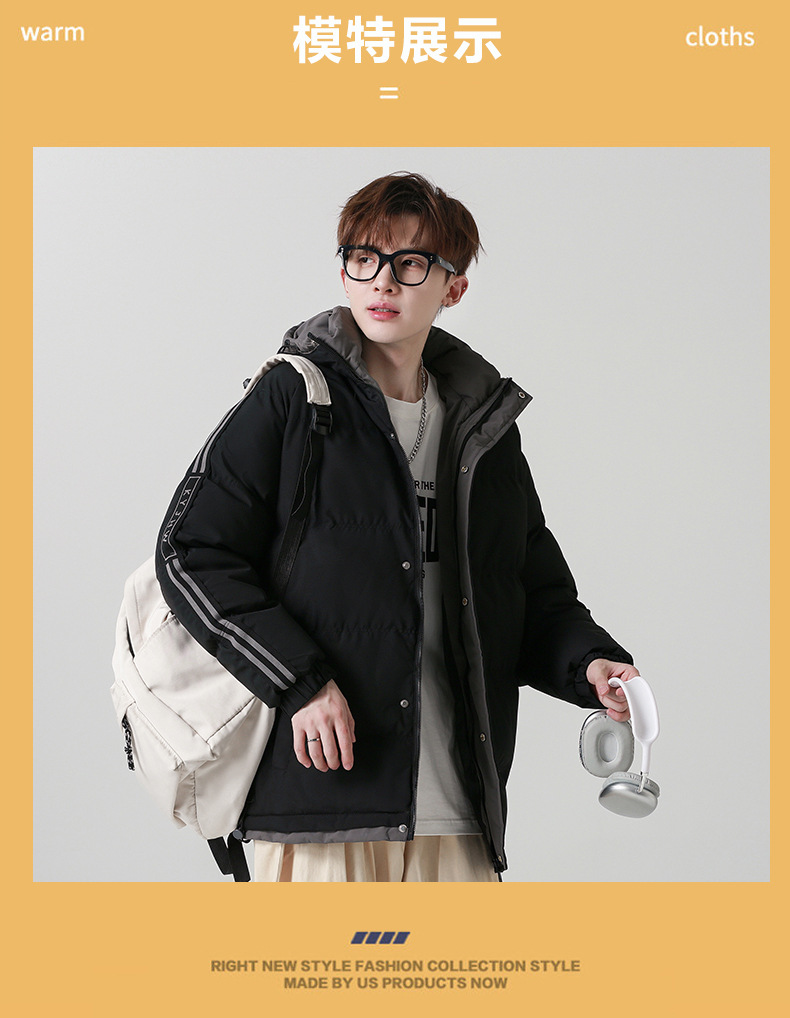 潮牌羽绒棉服男士2023年新款棉衣ins港风加厚外套秋冬季连帽棉袄
