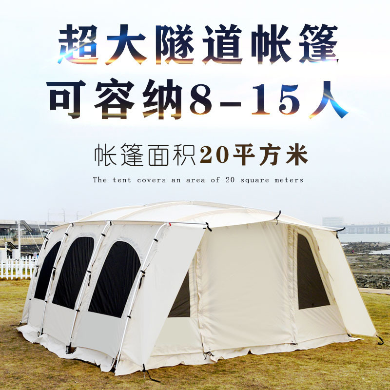 户外四杆大型隧道帐 加厚防雨防晒轻奢露营帐篷 露营野营装备厂家