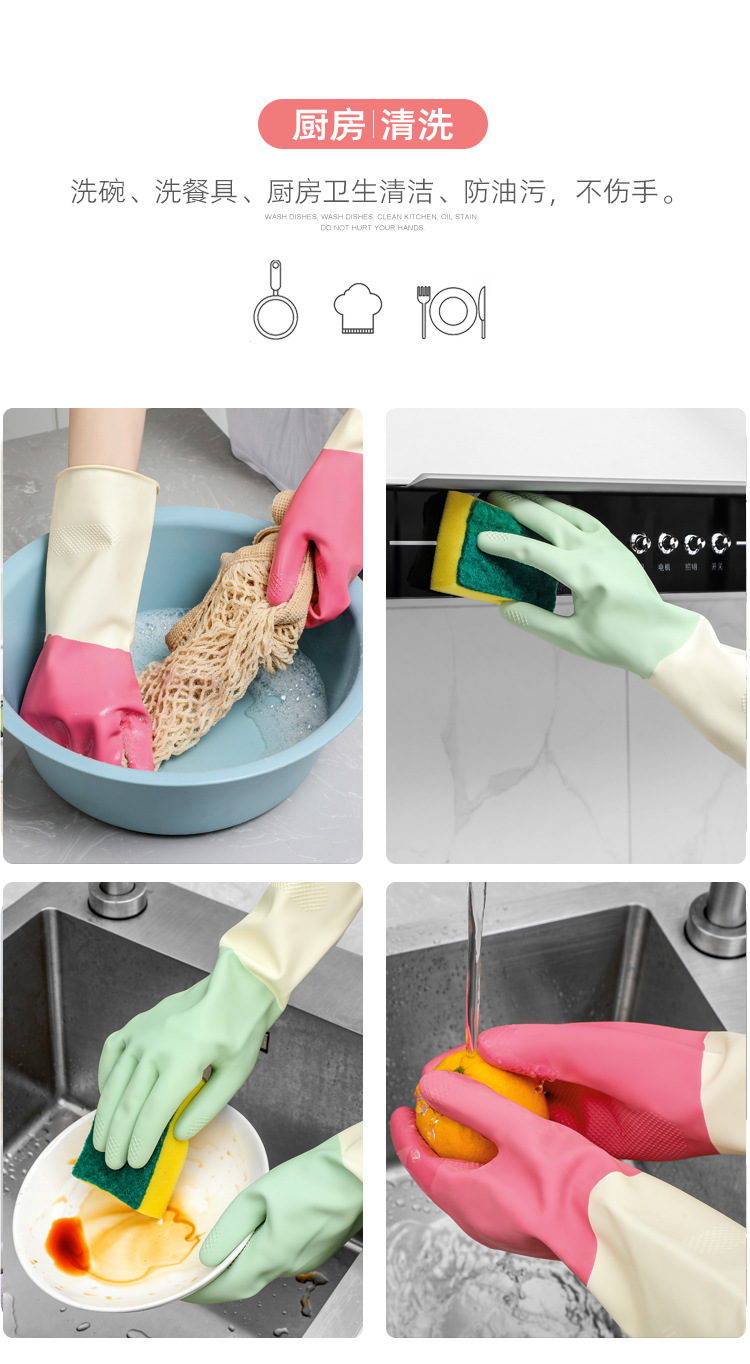 乳胶洗碗手套女防水耐用家务厨房刷锅洗菜洗衣服家用清洁手套