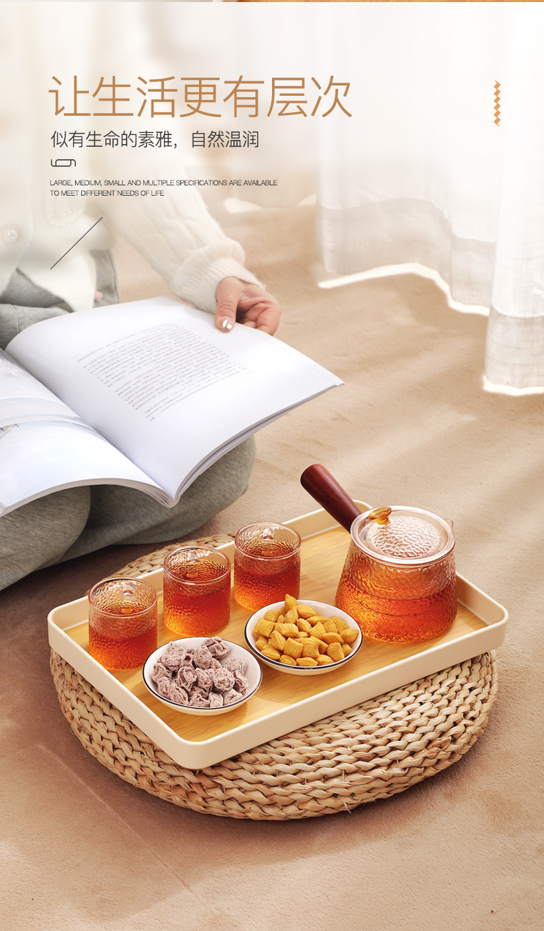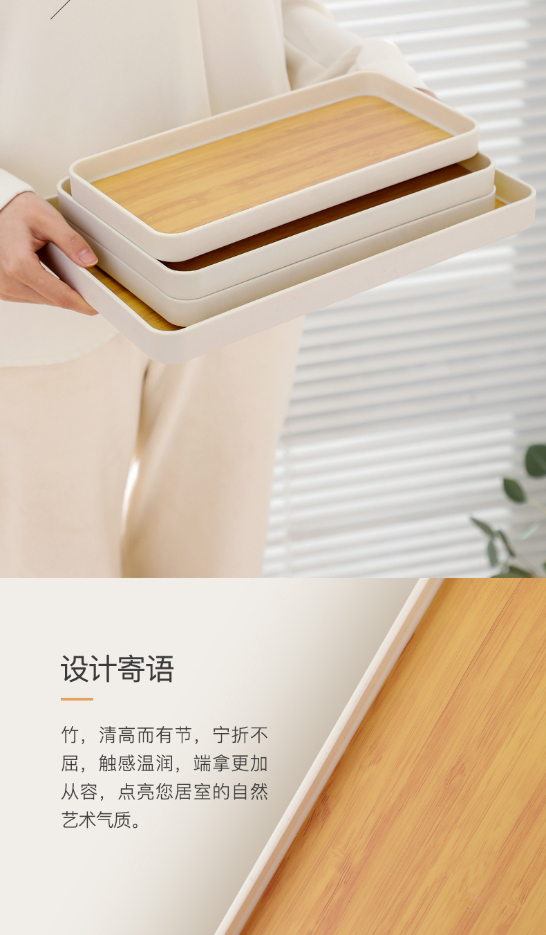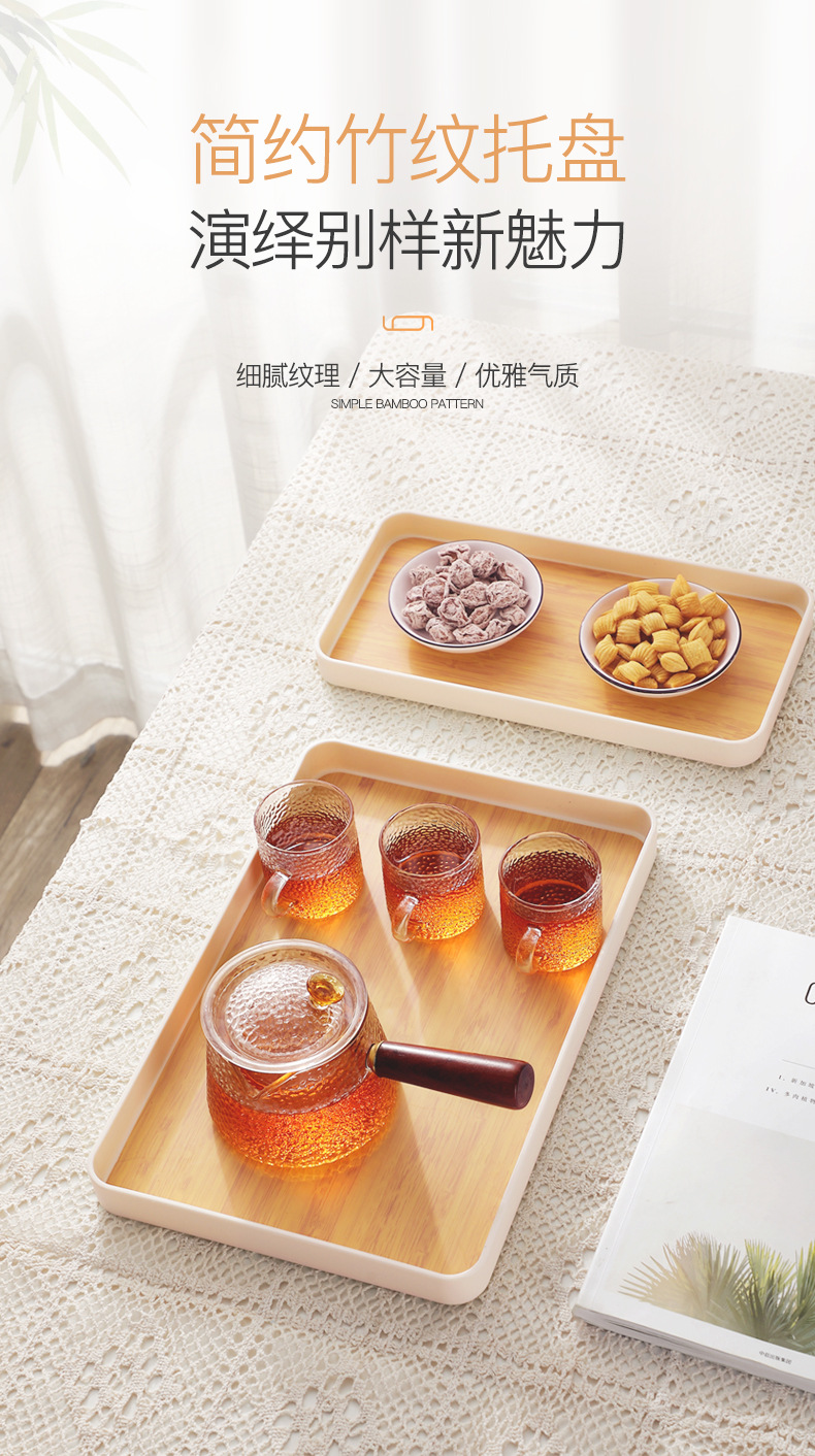 创意长方形托盘ins创意仿竹纹茶具放置茶盘日式家用塑料水果盘