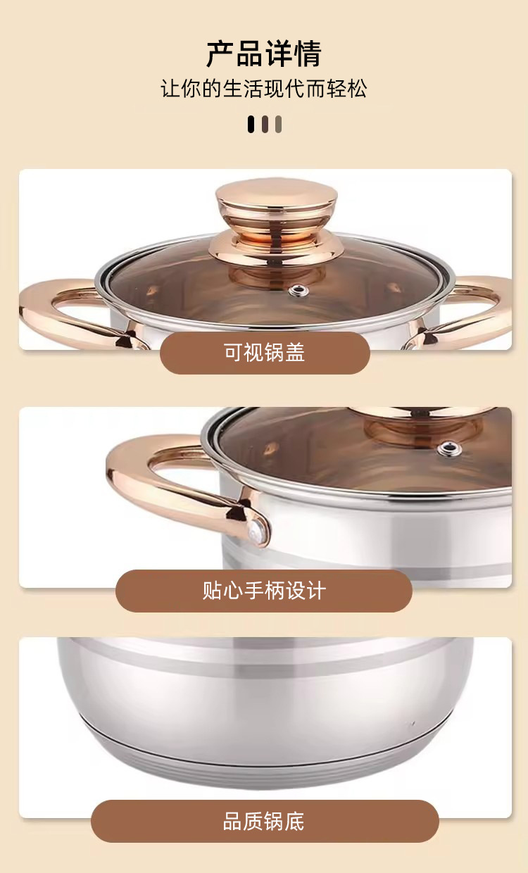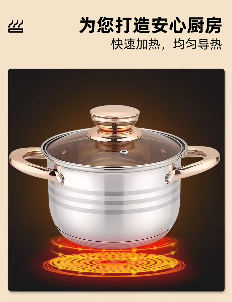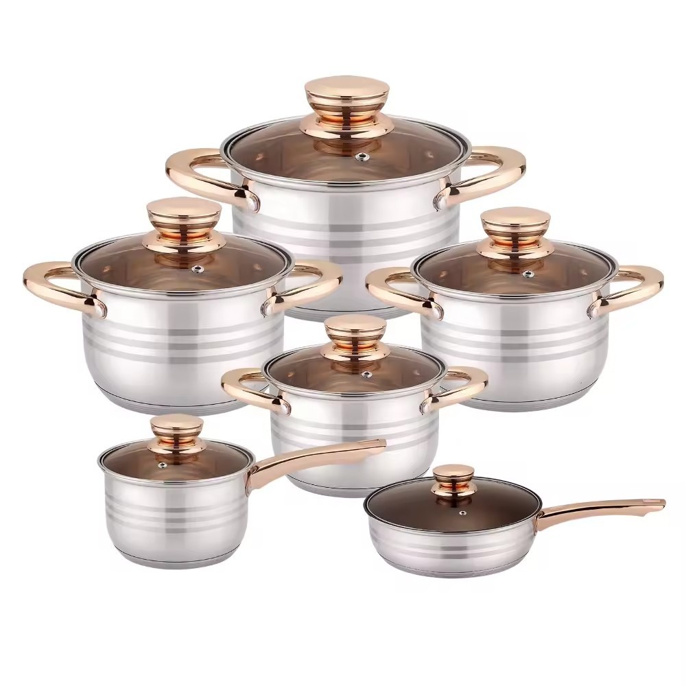 | gold handle 12 pieces set pot-7 layers double bottom(金柄12件套装锅-7层复底) | USD $27.21 | 10000 set available |