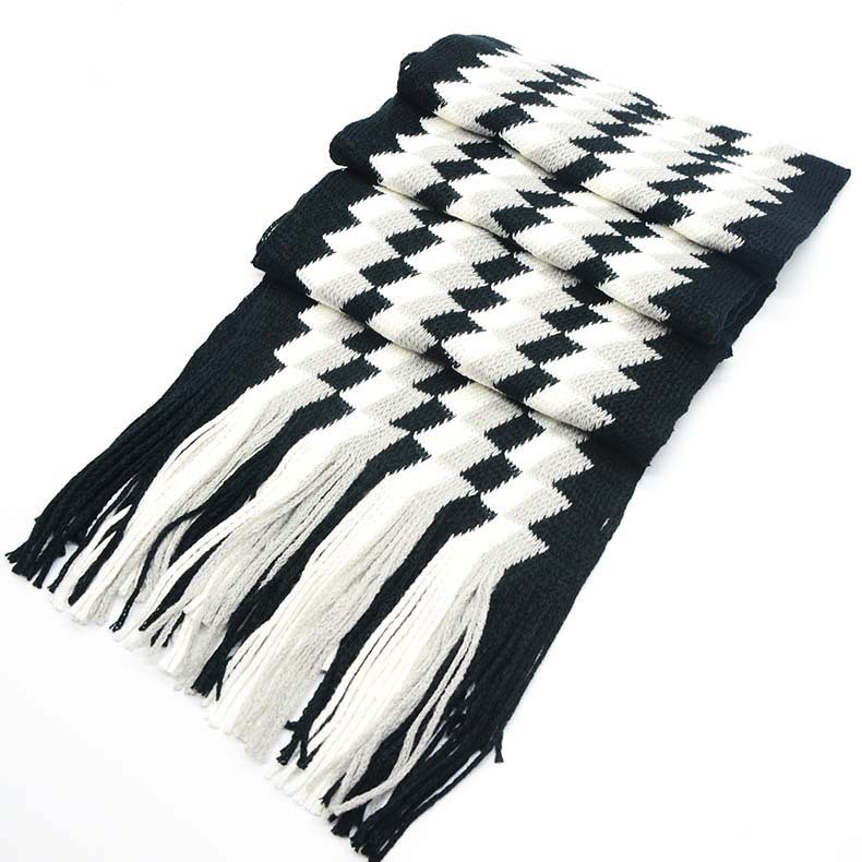 韩国东大门针织条纹围巾格子 秋冬保暖羊毛线围巾 流苏ins围巾男