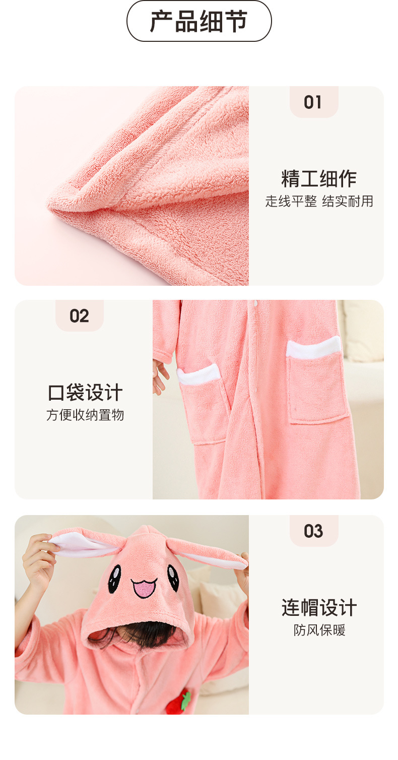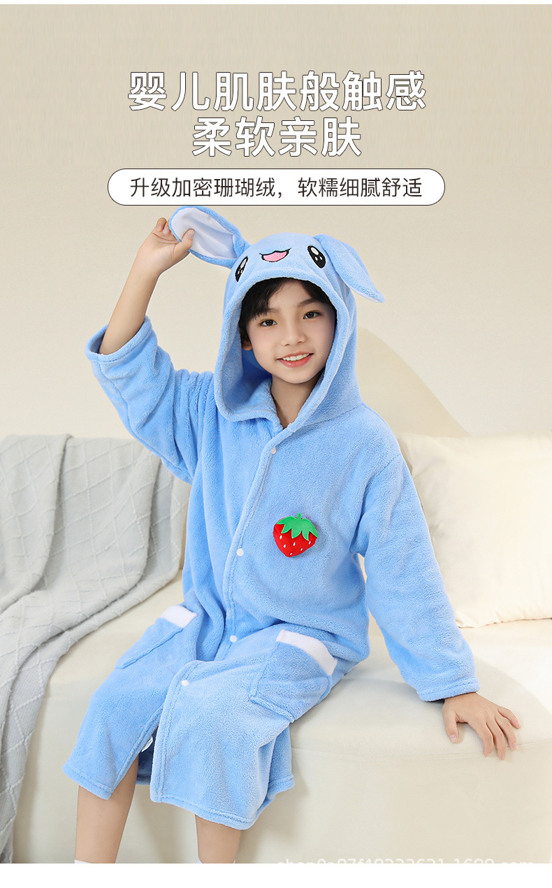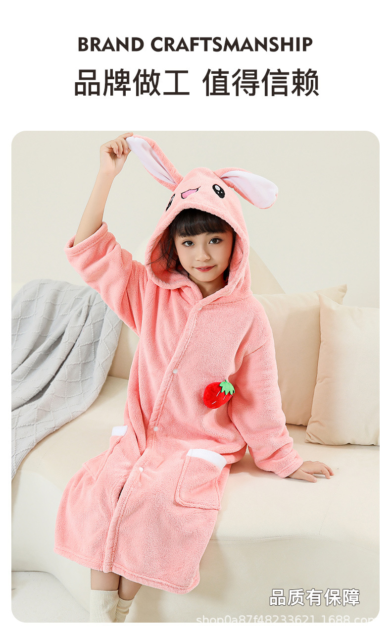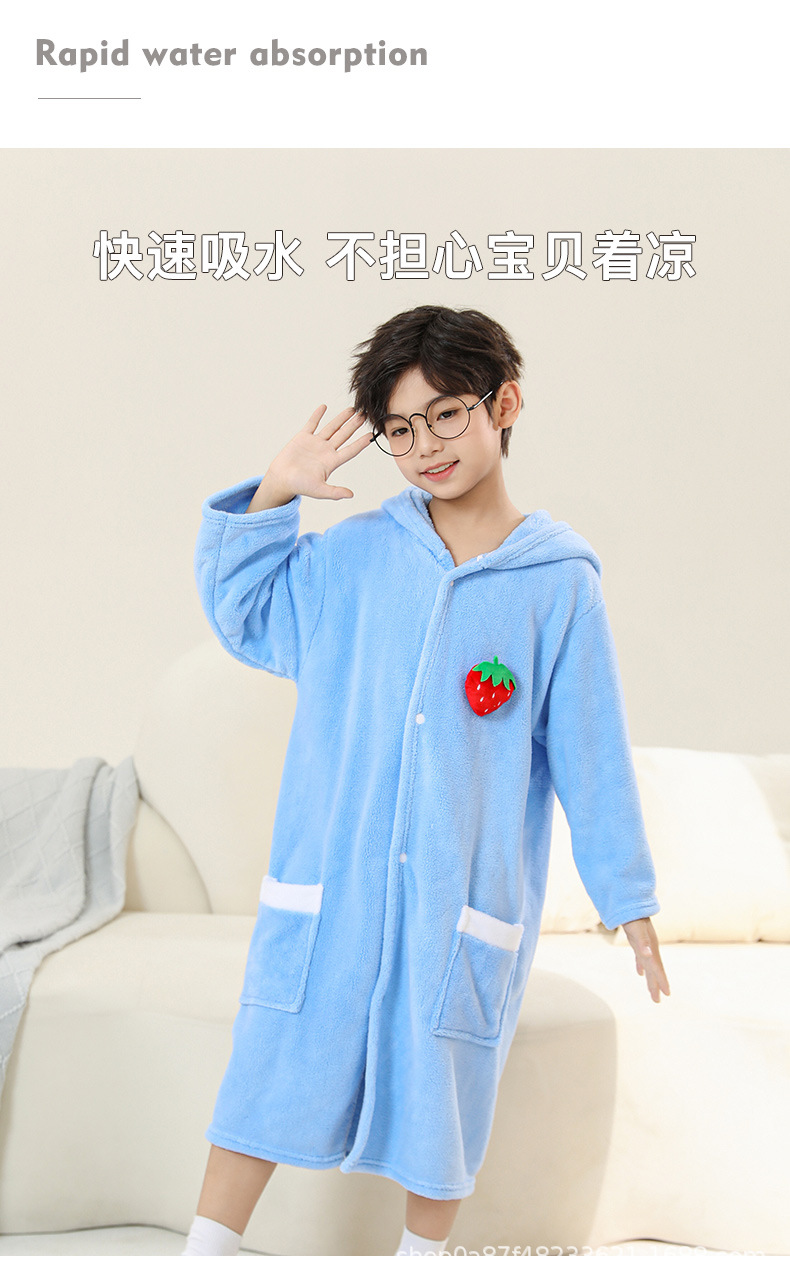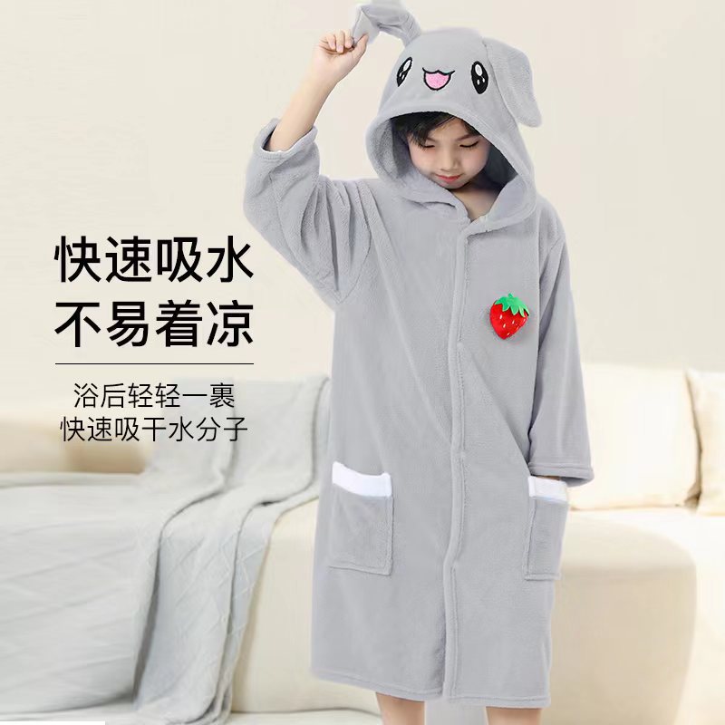 卡通儿童男女孩吸水速干珊瑚绒可穿浴巾带帽斗篷
