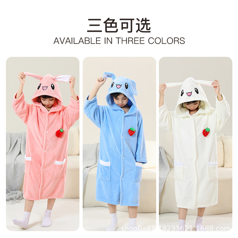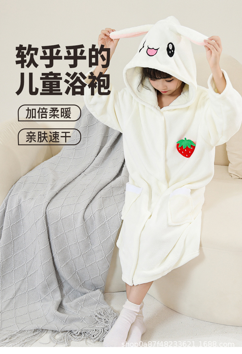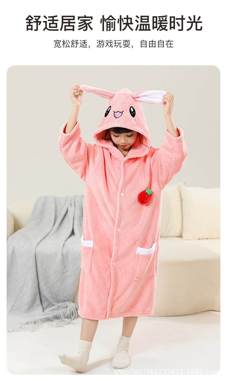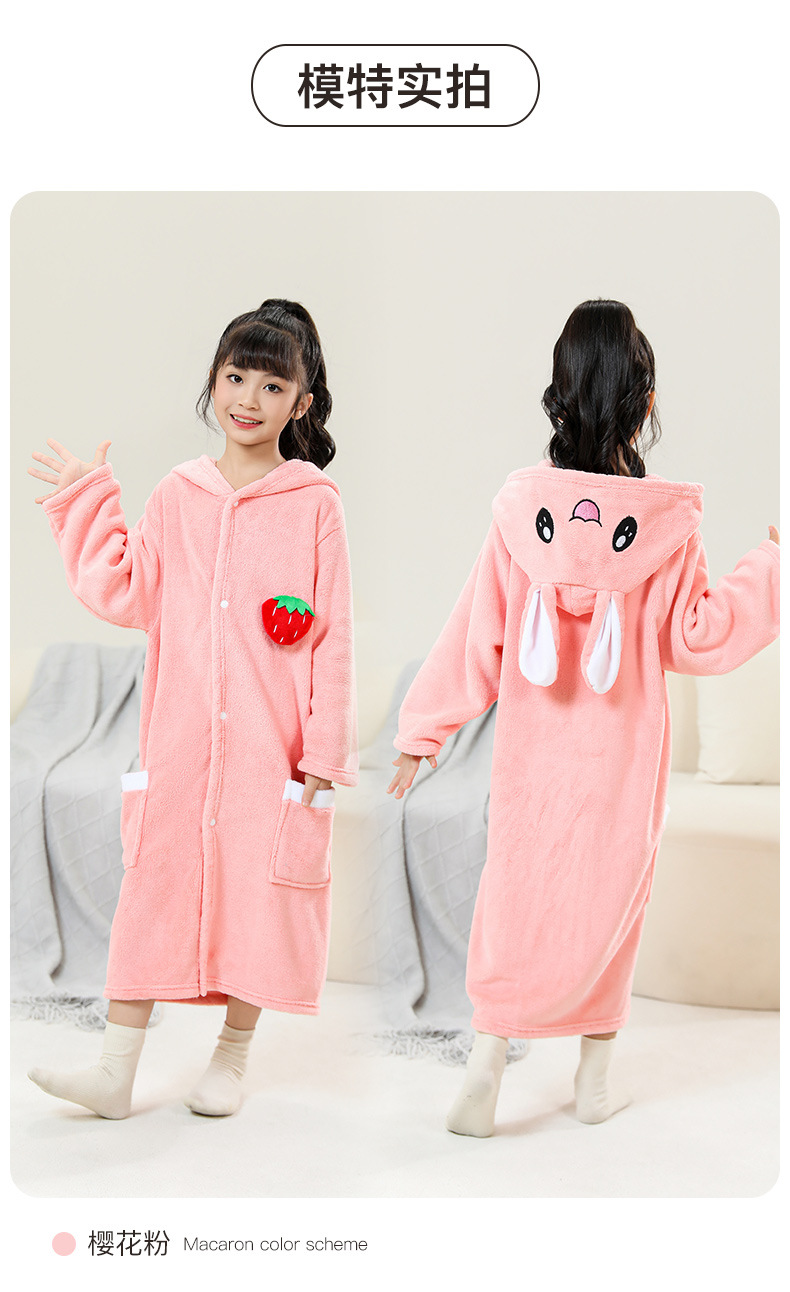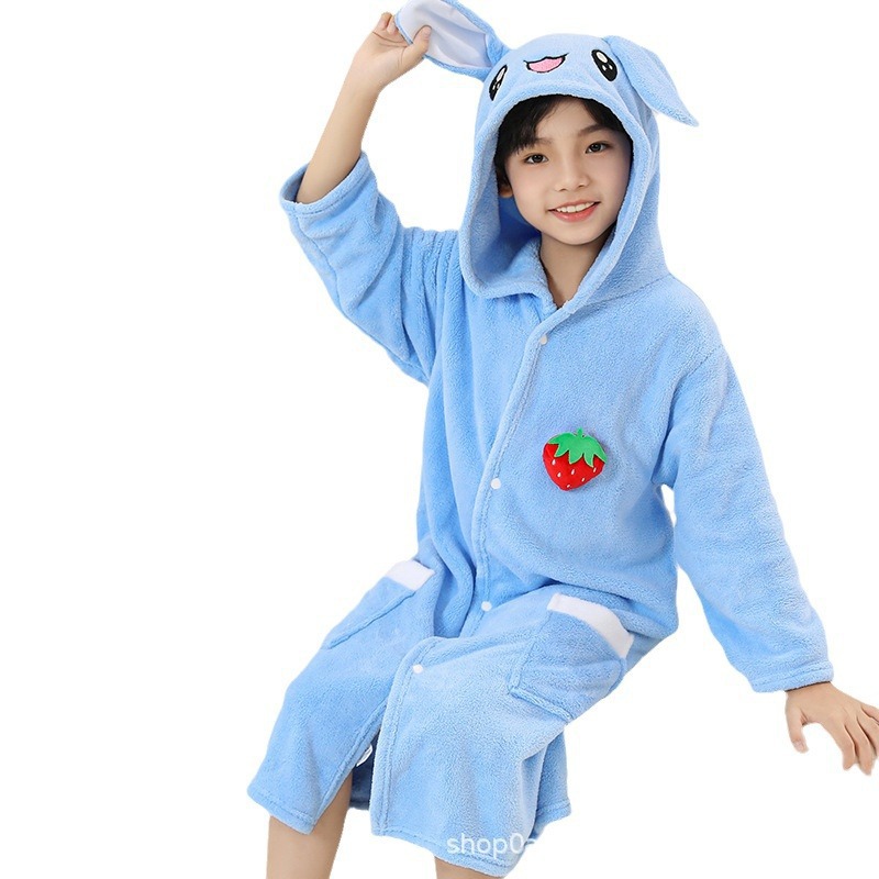 卡通儿童男女孩吸水速干珊瑚绒可穿浴巾带帽斗篷