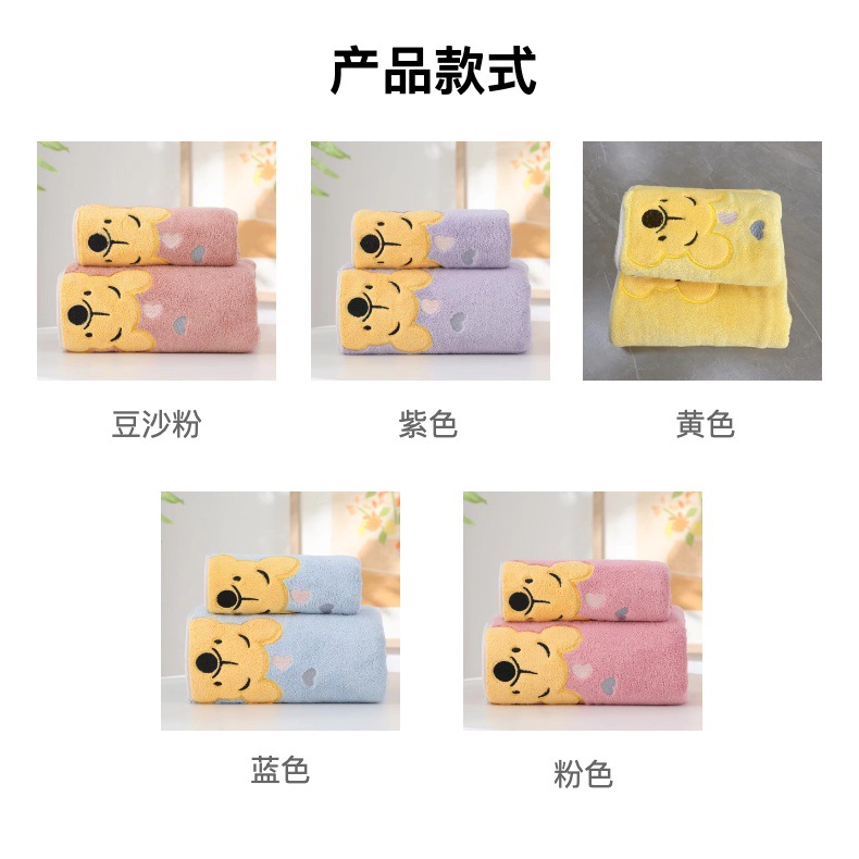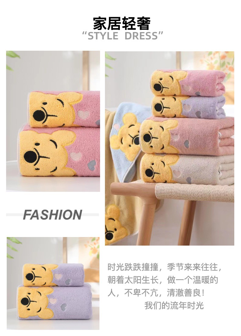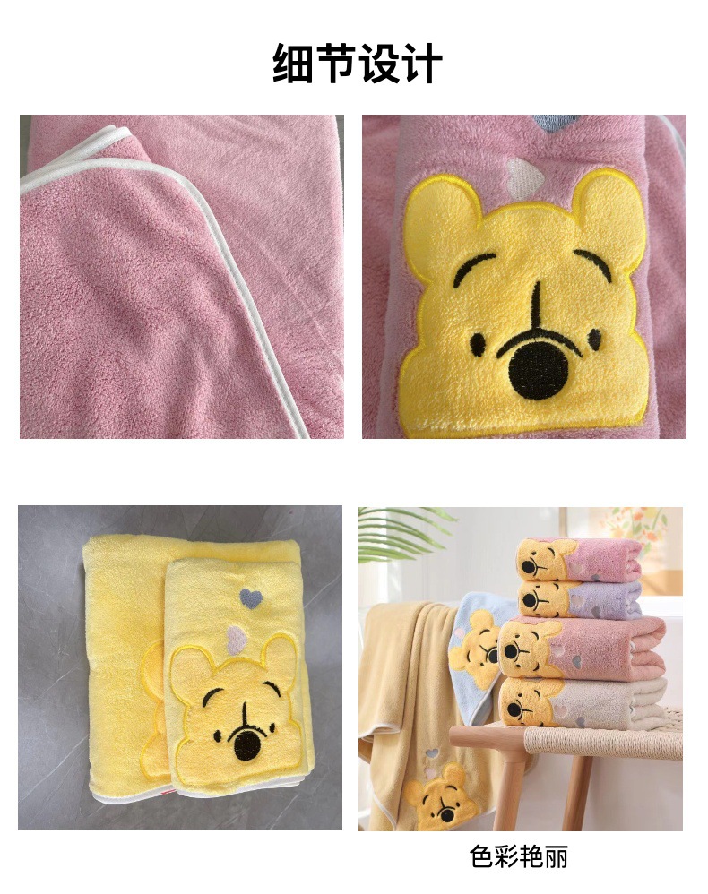 珊瑚绒卡通刺绣浴巾维尼熊毛巾浴巾家用儿童加厚浴巾柔软吸水亲肤