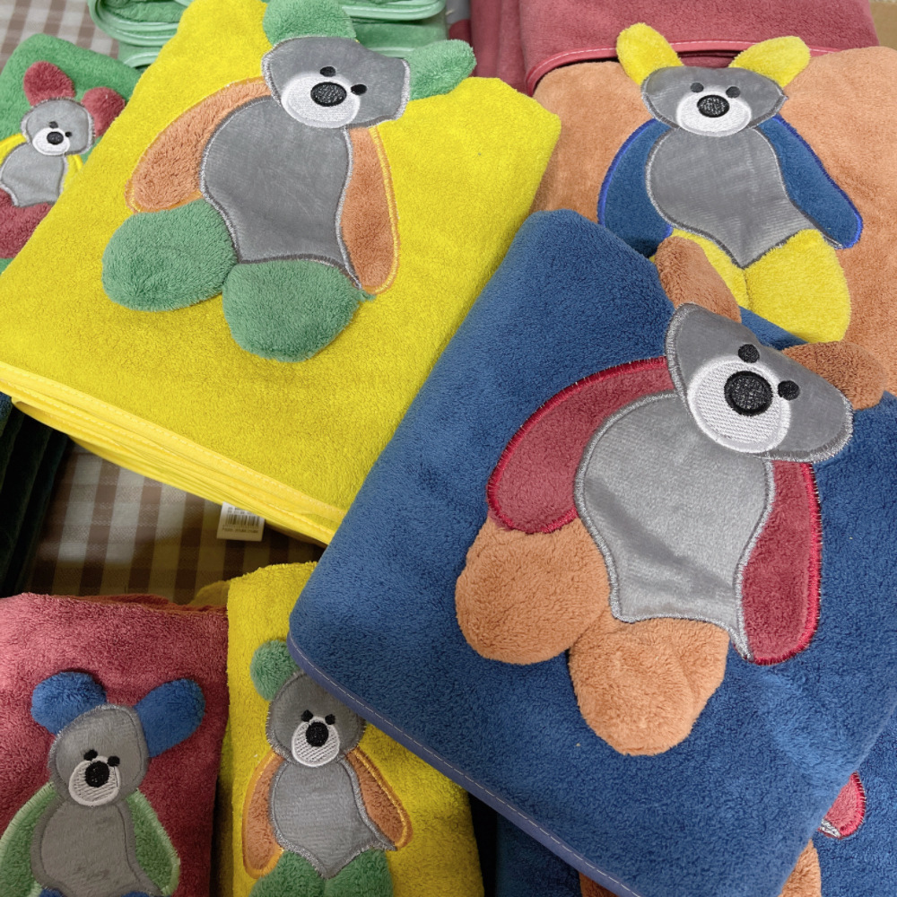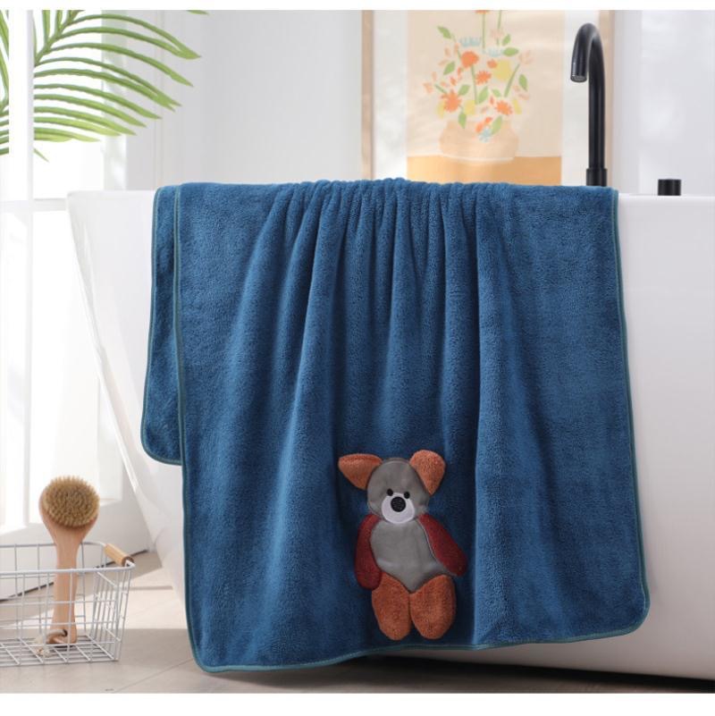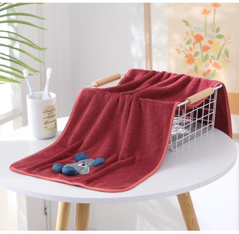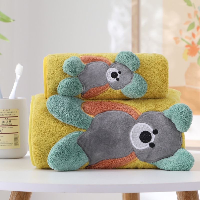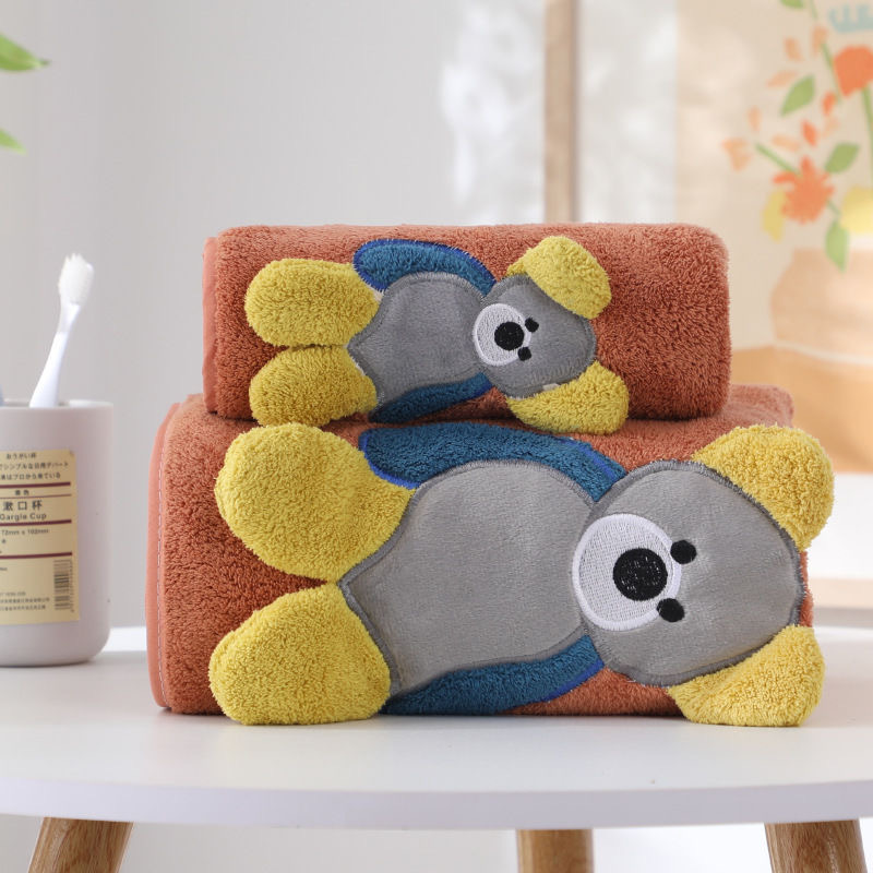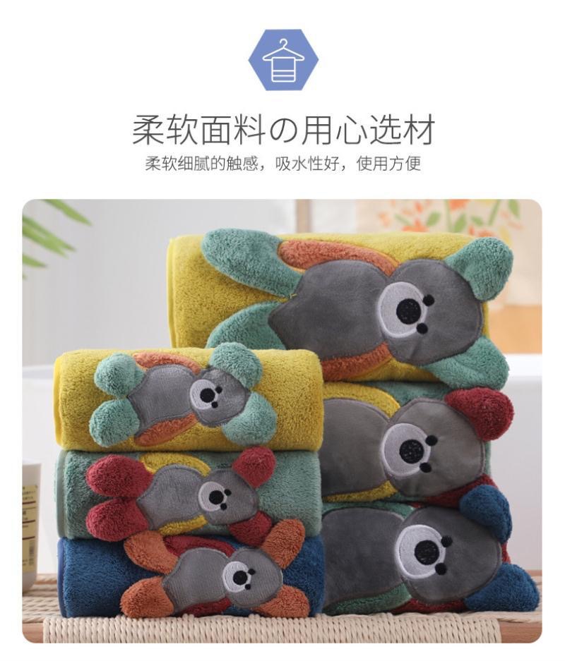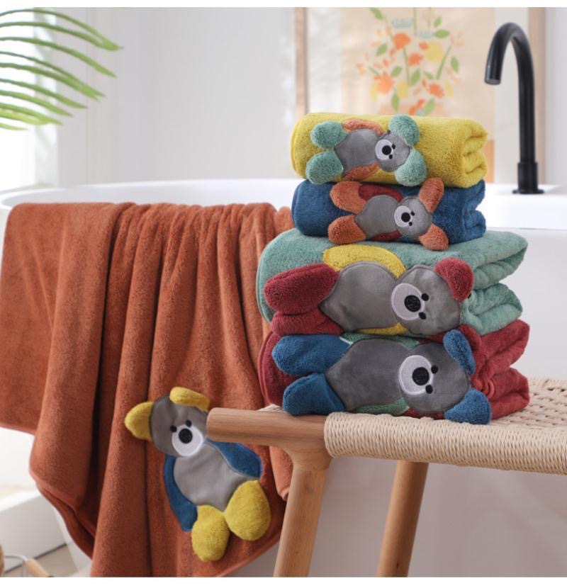 珊瑚绒卡通刺绣浴巾毛巾抱抱熊套装家用儿童加厚浴巾柔软吸水亲肤