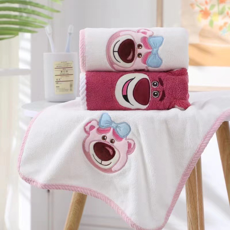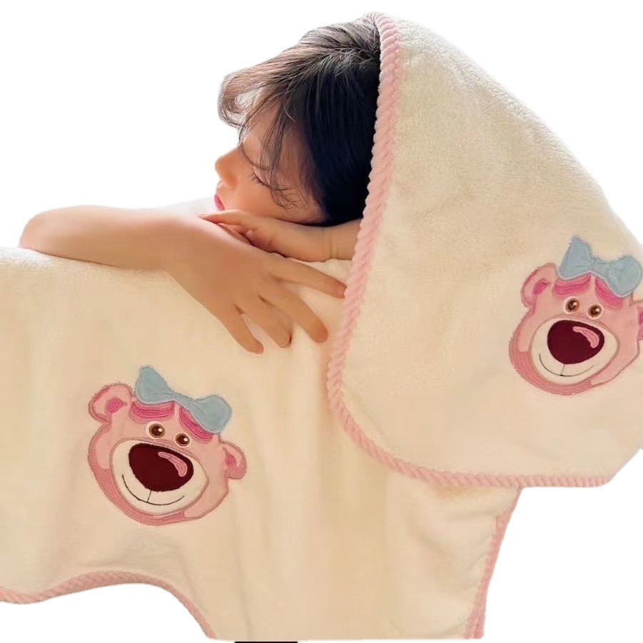 珊瑚绒高密加厚草莓熊浴巾套巾可爱卡通刺绣毛巾