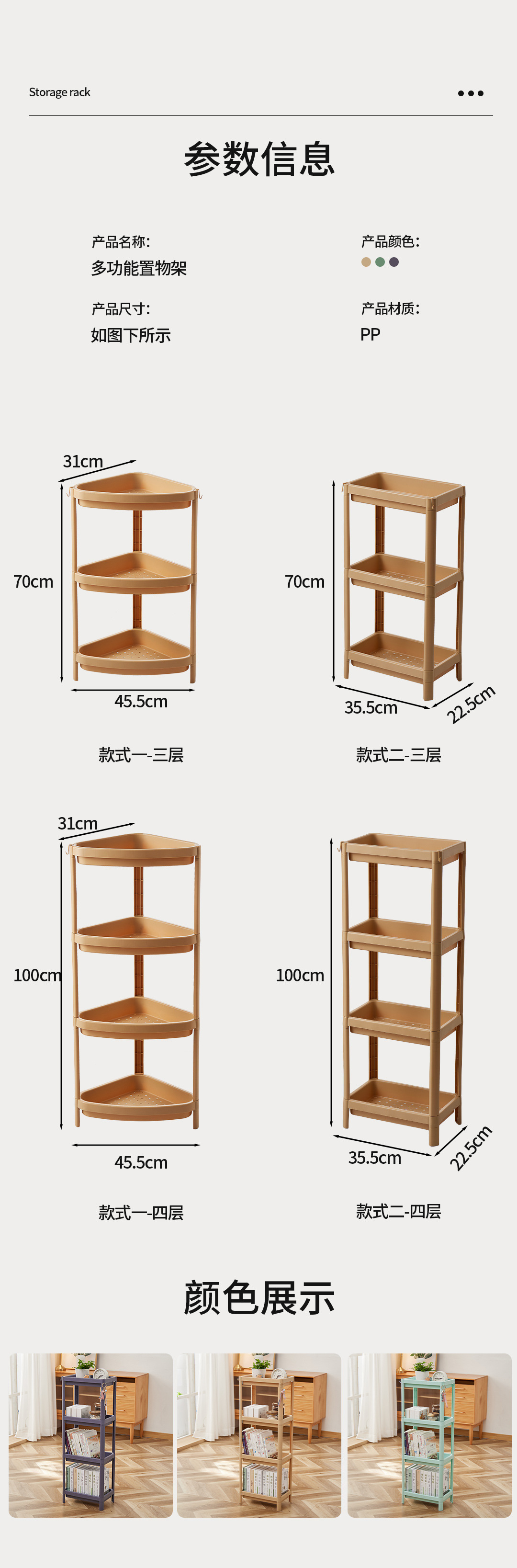 塑料置物架 多功能玩具杂收纳层架 边柜 厨房蔬果 卫浴收纳架