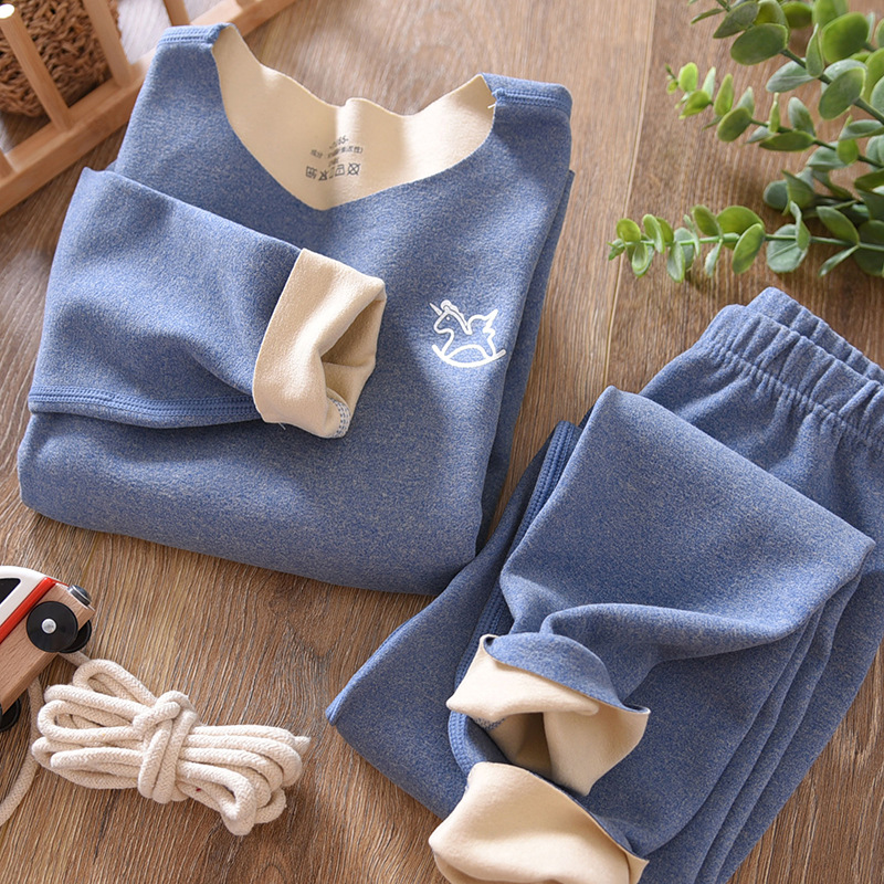 儿童AB面保暖内衣冬新款男女童秋衣裤无骨套装童装中大童