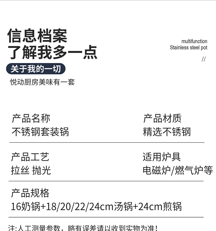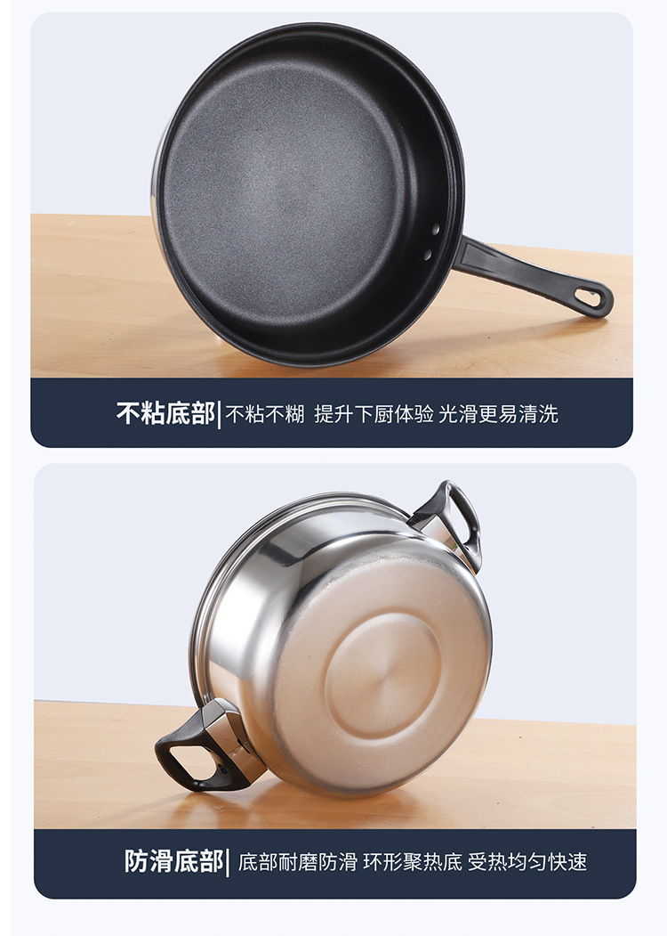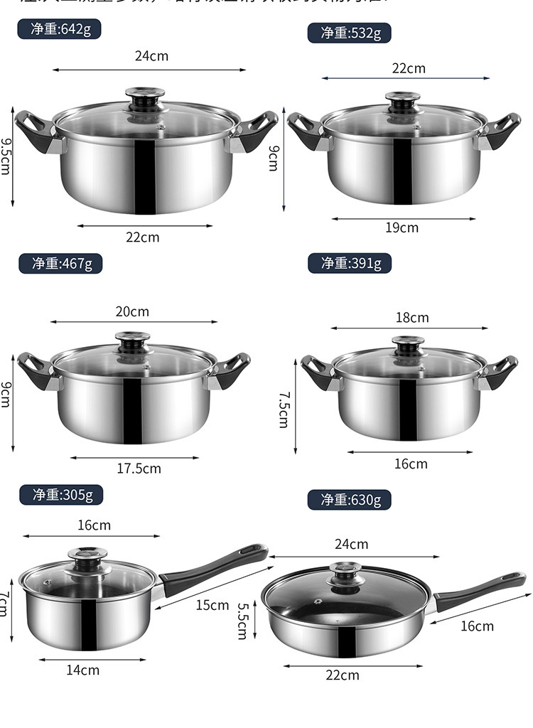 锅身0.3mm厚,410不锈钢材质。一套重量3100g
