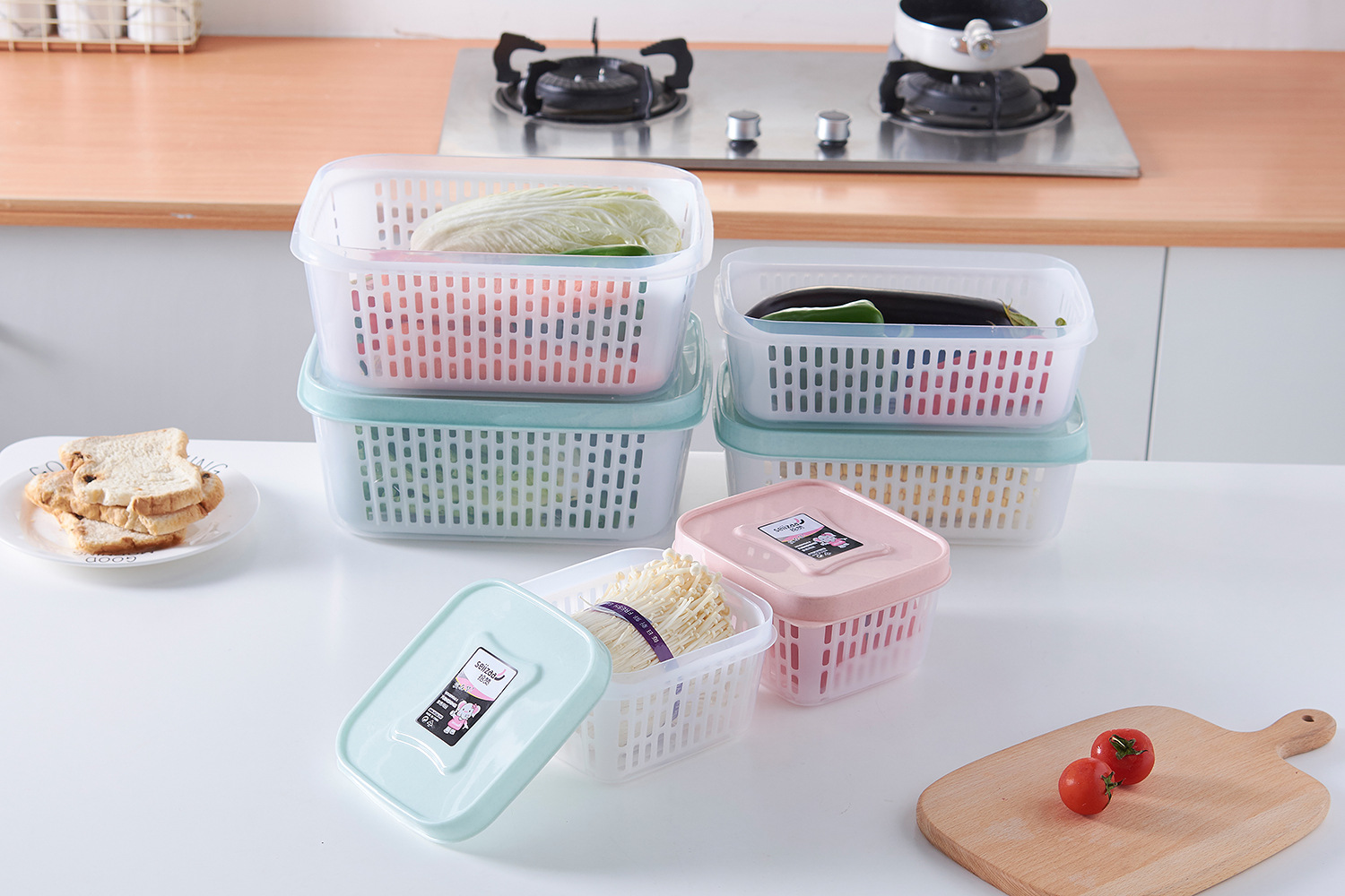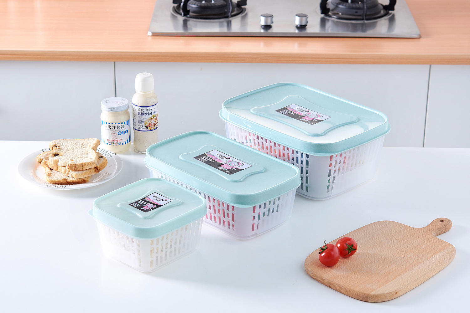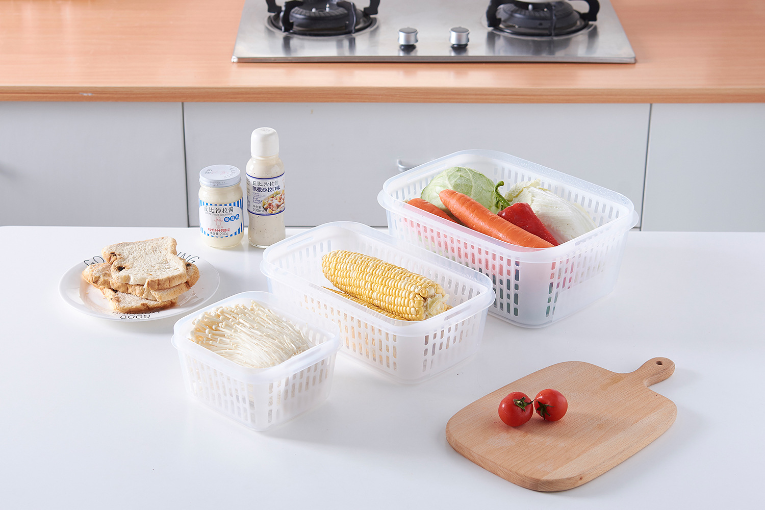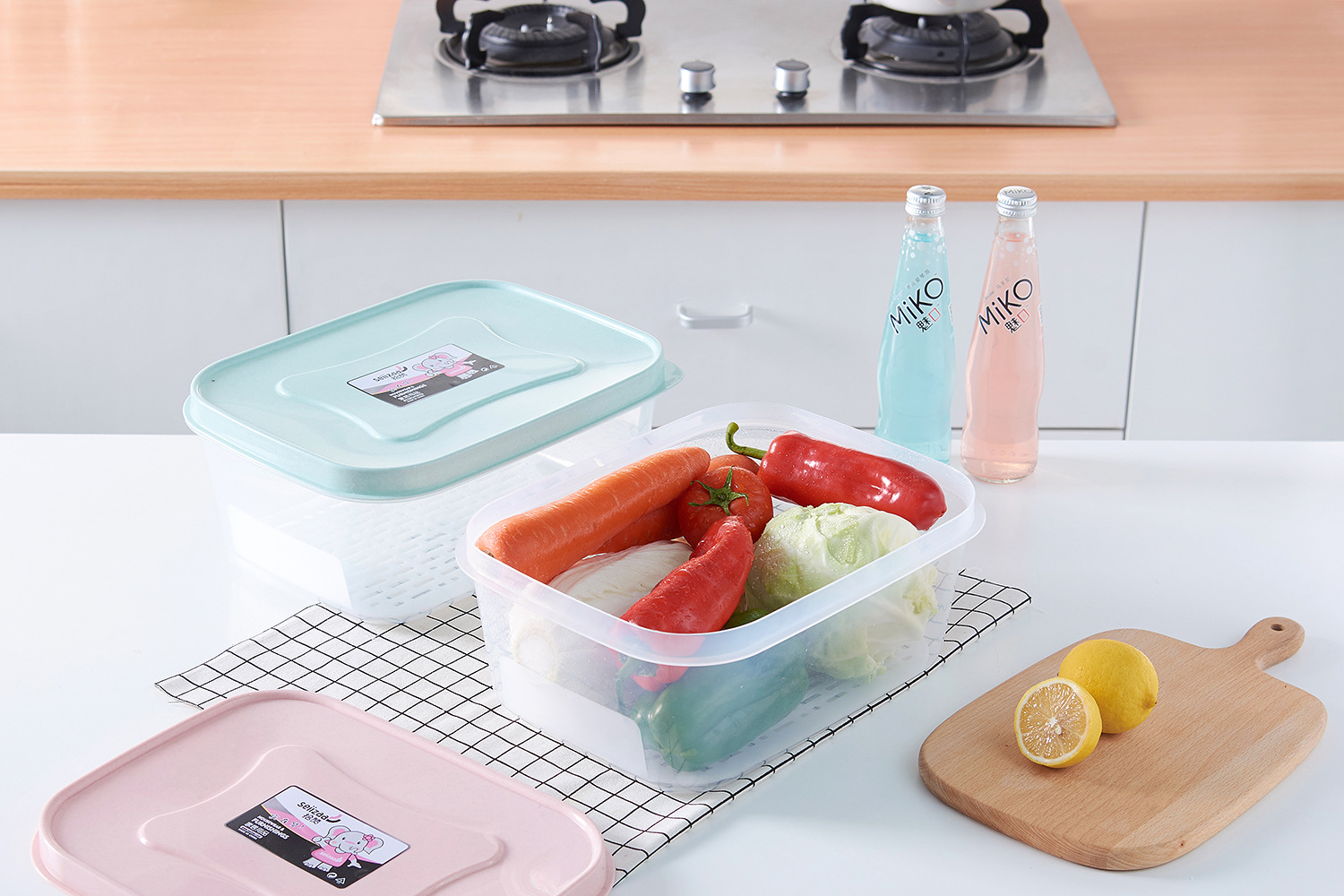 沥水保鲜盒厨房塑料鱼盒海鲜水果蔬菜长方形冰箱冷藏储藏密封盒