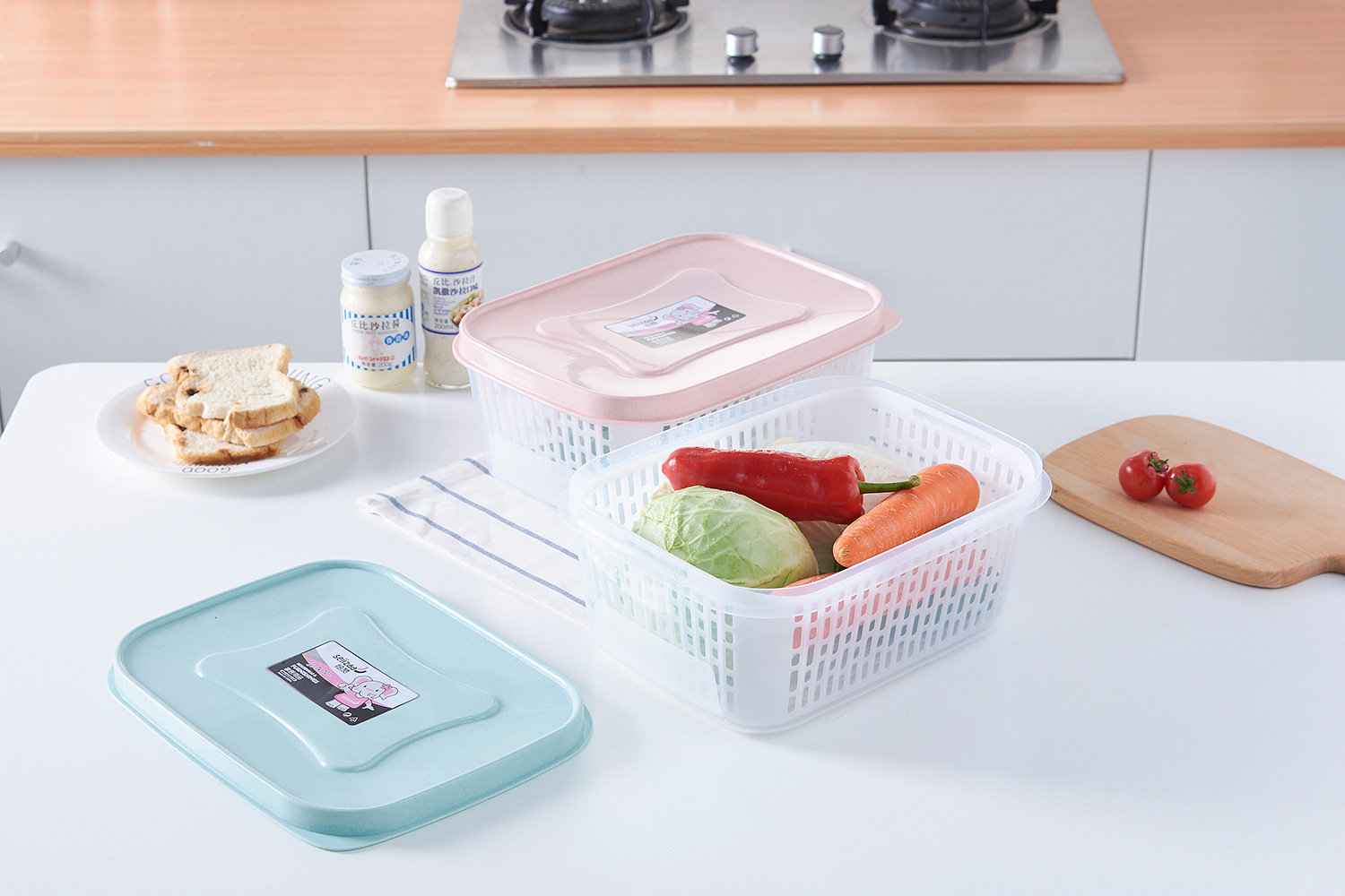 ▼大号带沥水篮保鲜盒-- 密集沥水孔,通风透气