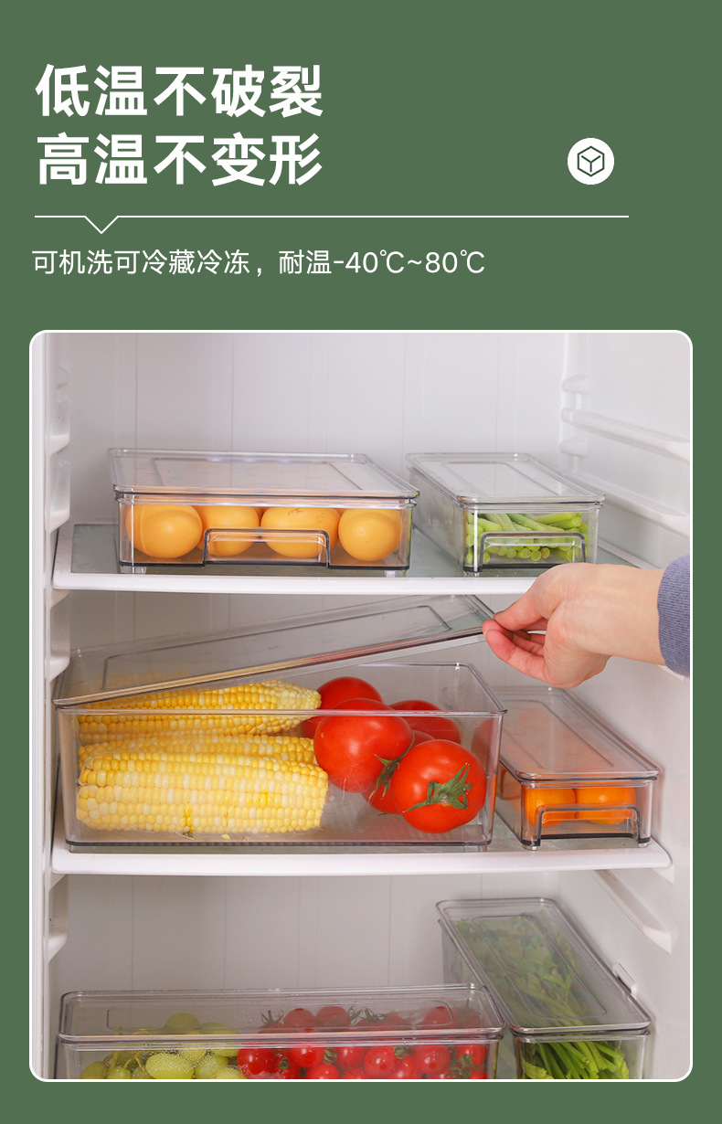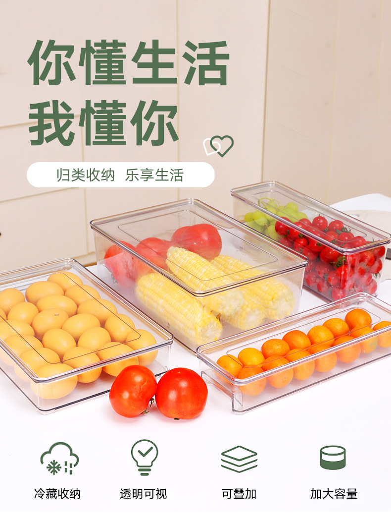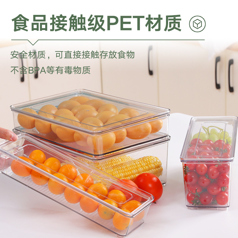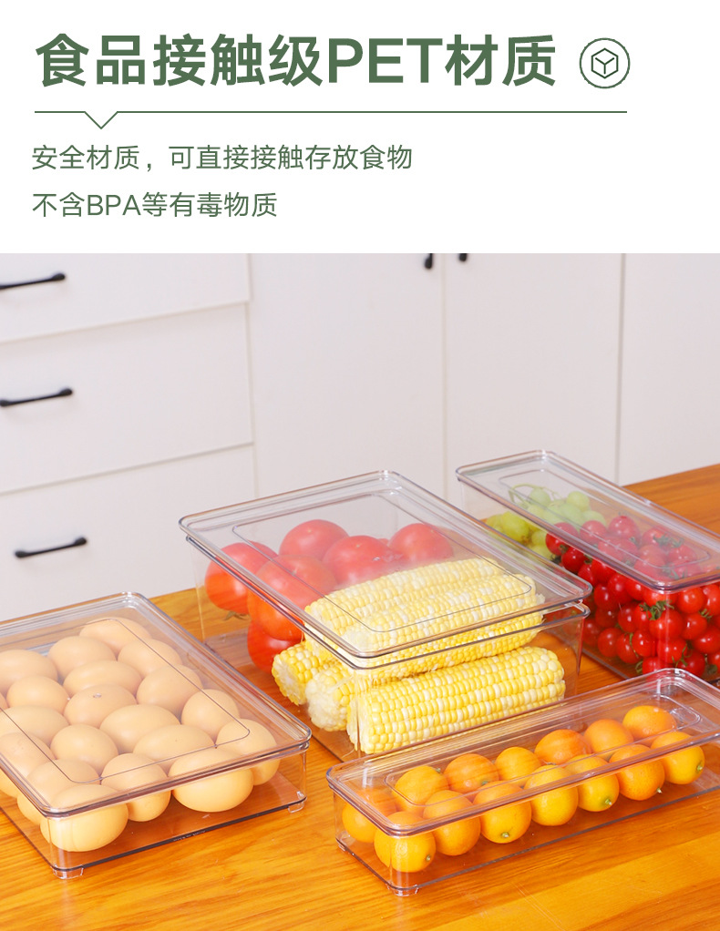 PET材质多尺寸透明收纳盒 新款冰箱收纳盒 自组分类归纳保鲜盒
