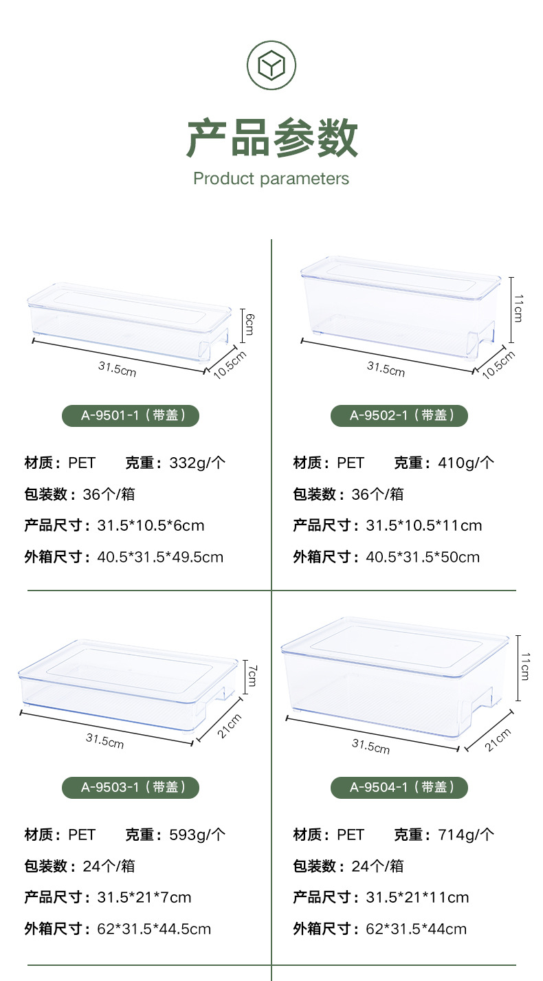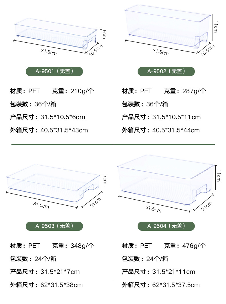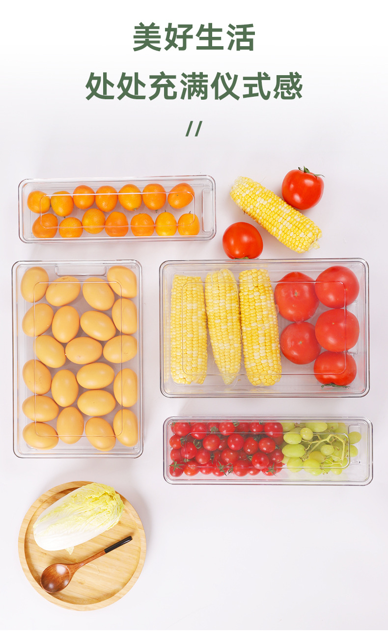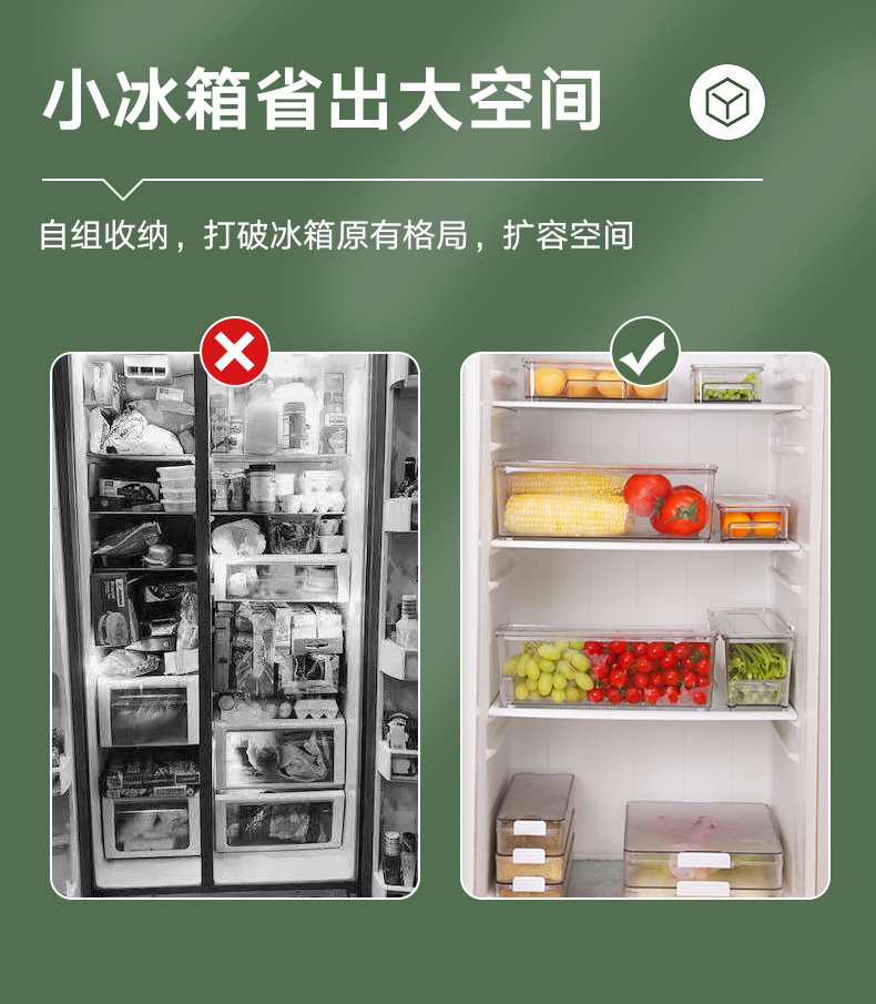 PET材质多尺寸透明收纳盒 新款冰箱收纳盒 自组分类归纳保鲜盒