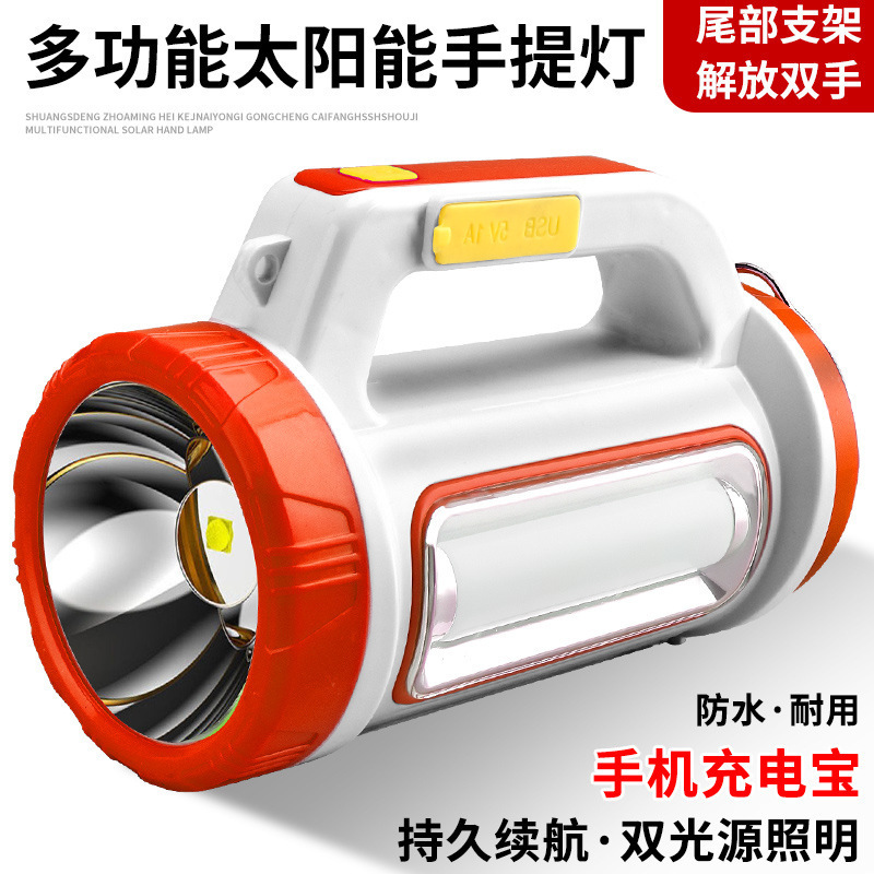 新品多功能户外太阳能强光LEDUSB充电带侧灯野营应急手提探照灯