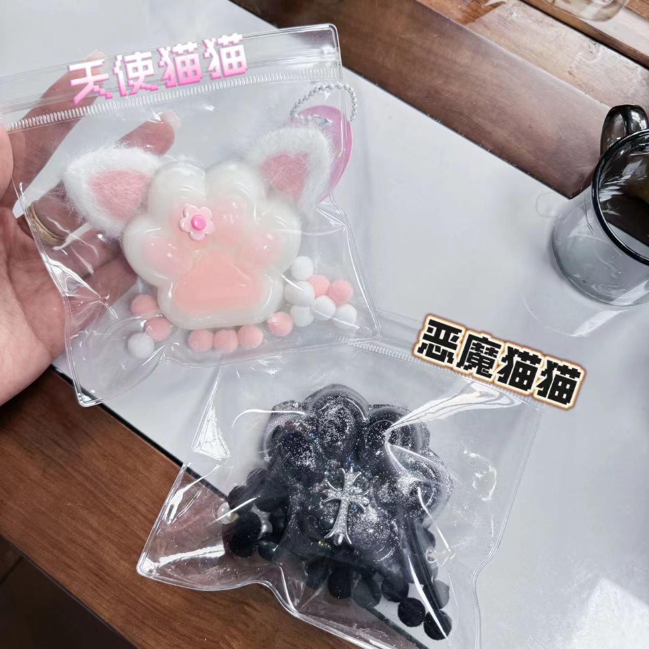 新款天使猫爪猫耳朵十字架黑暗猫爪捏捏乐玩具超软泥感小红书同款