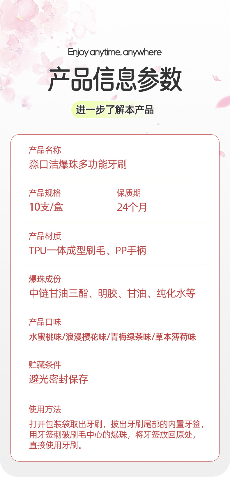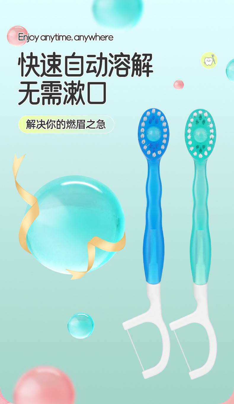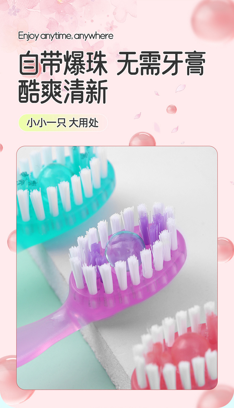 厂家迷你爆珠牙刷多功能便携旅行10支装免漱口一次性软毛牙刷批发