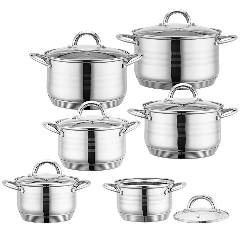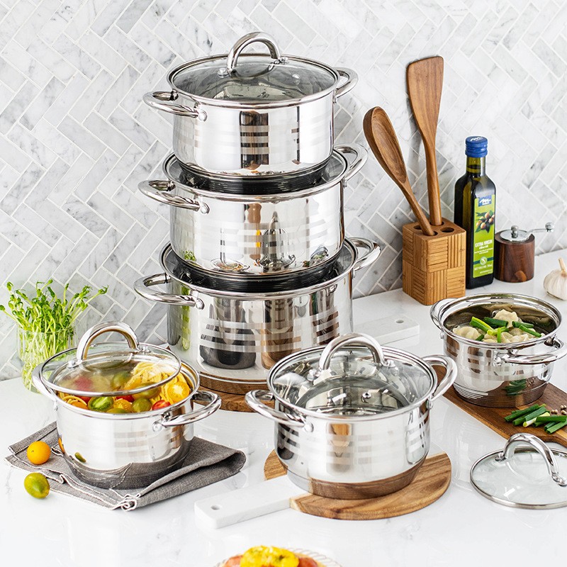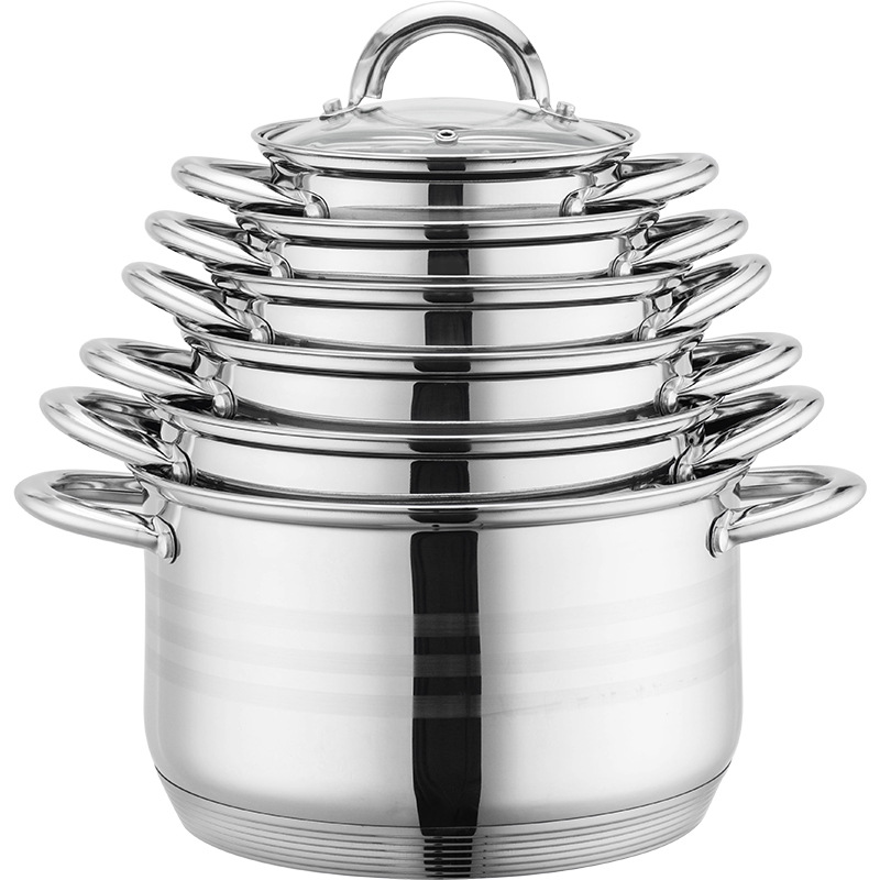 跨境不锈钢12件套锅线柄奶锅不锈钢汤锅蒸锅