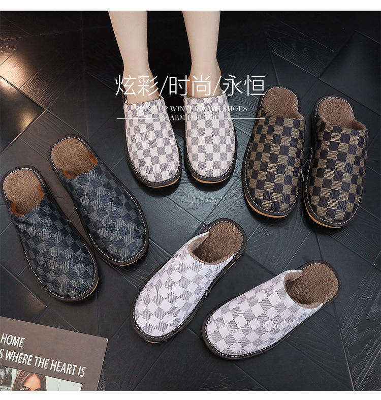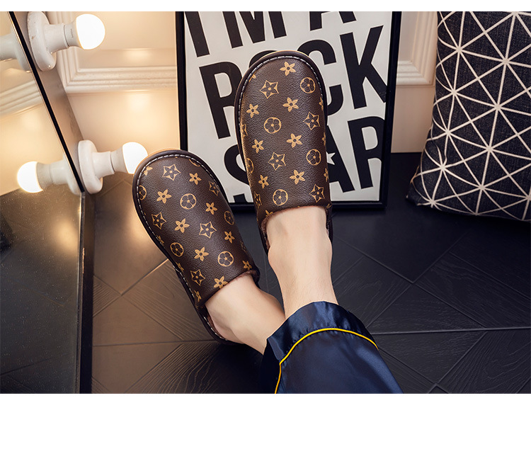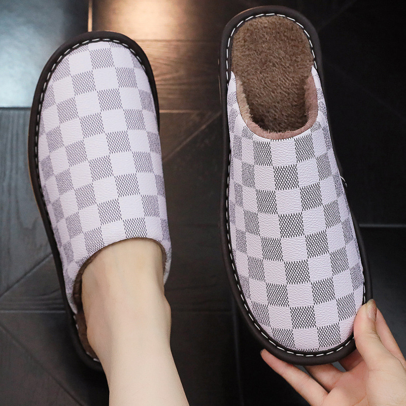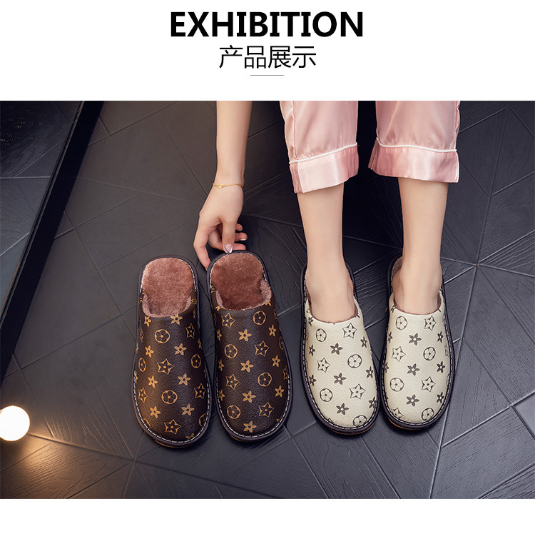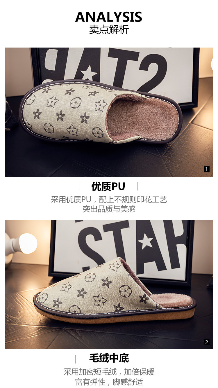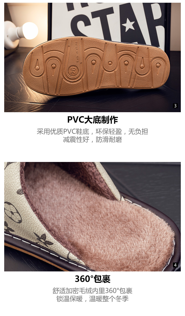 皮面棉拖鞋男士新款冬季厚底室内家居防水家用防滑拖鞋女秋冬