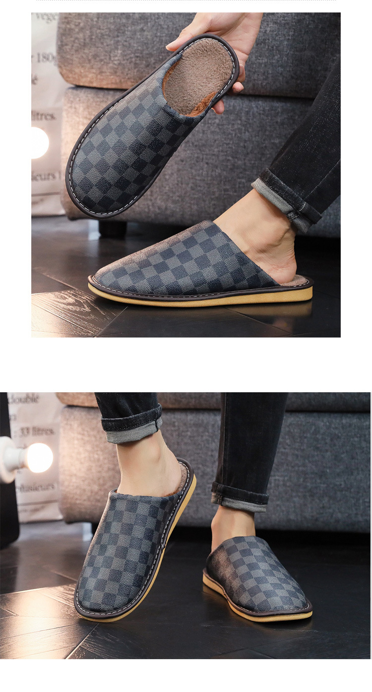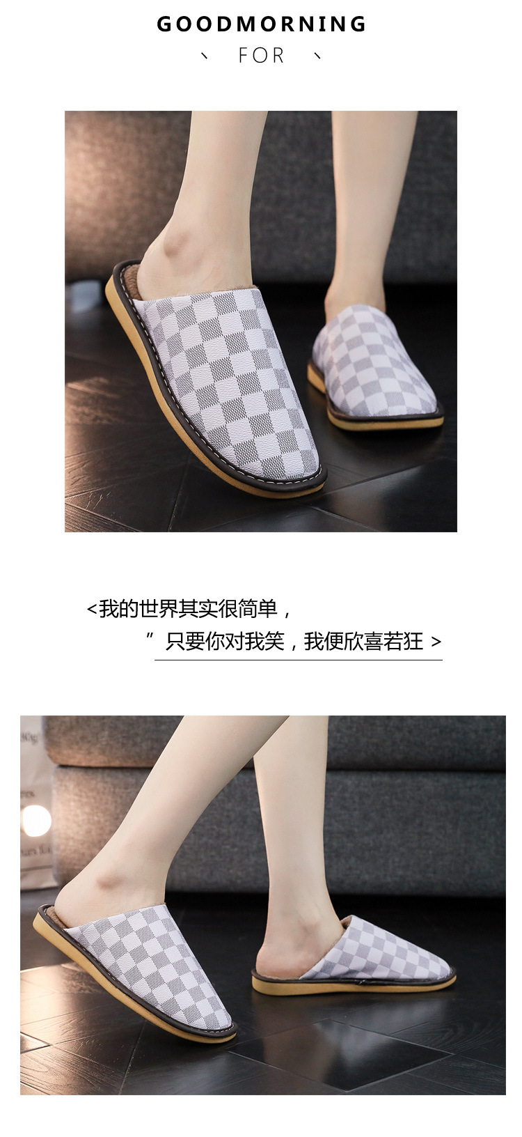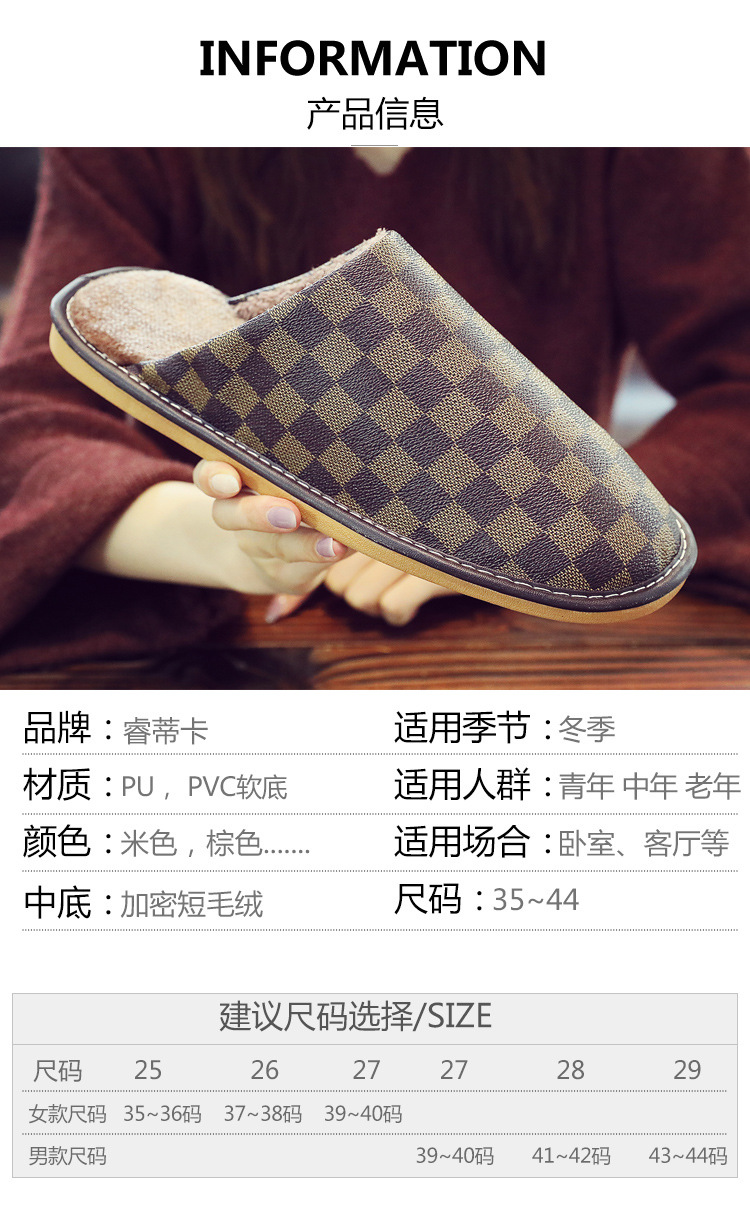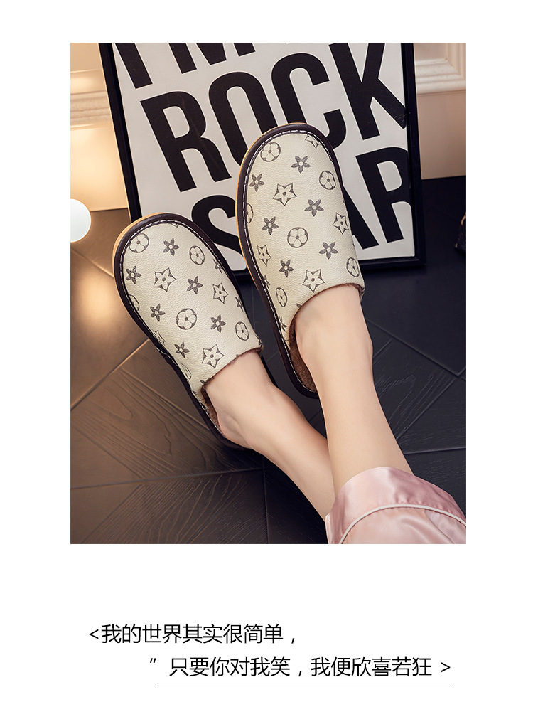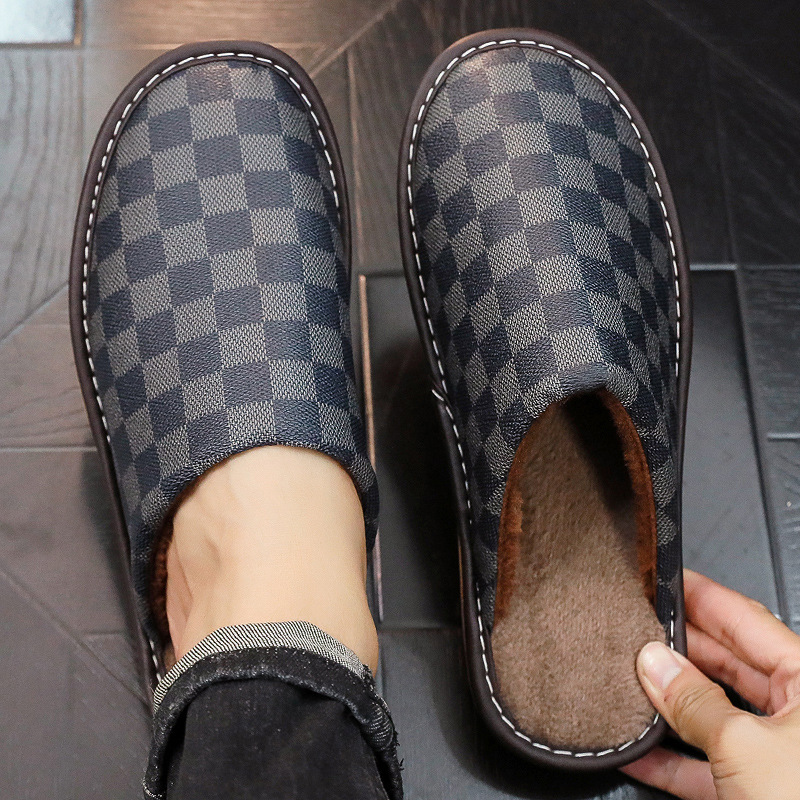 皮面棉拖鞋男士新款冬季厚底室内家居防水家用防滑拖鞋女秋冬