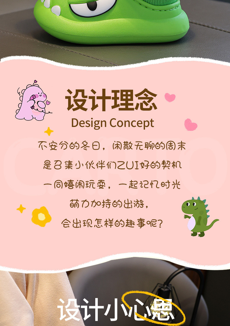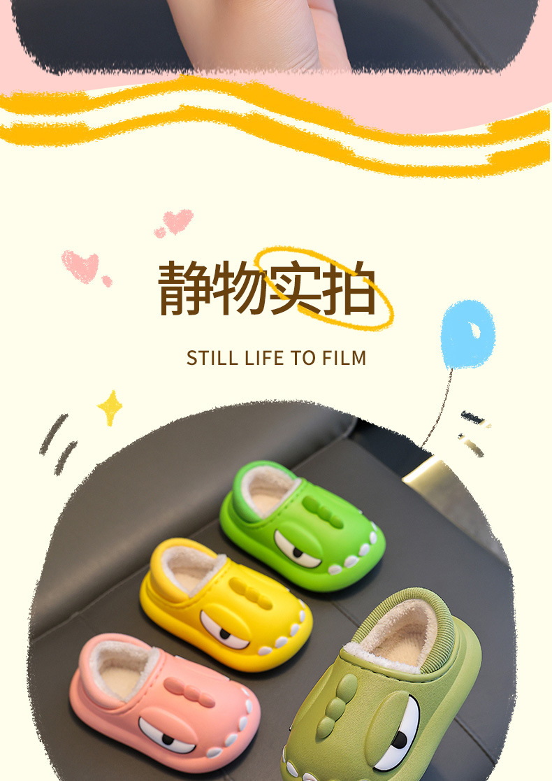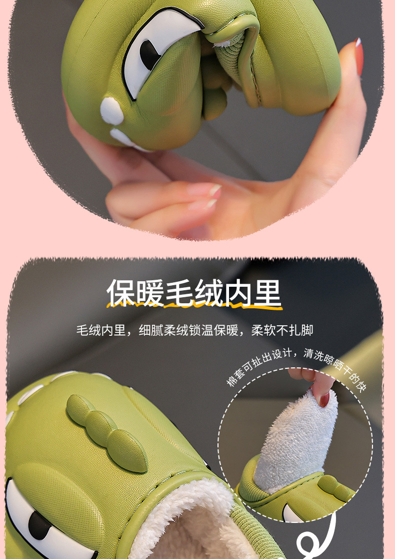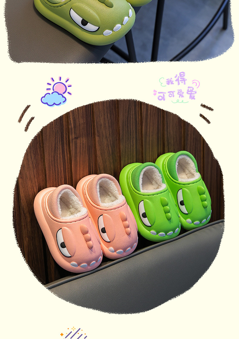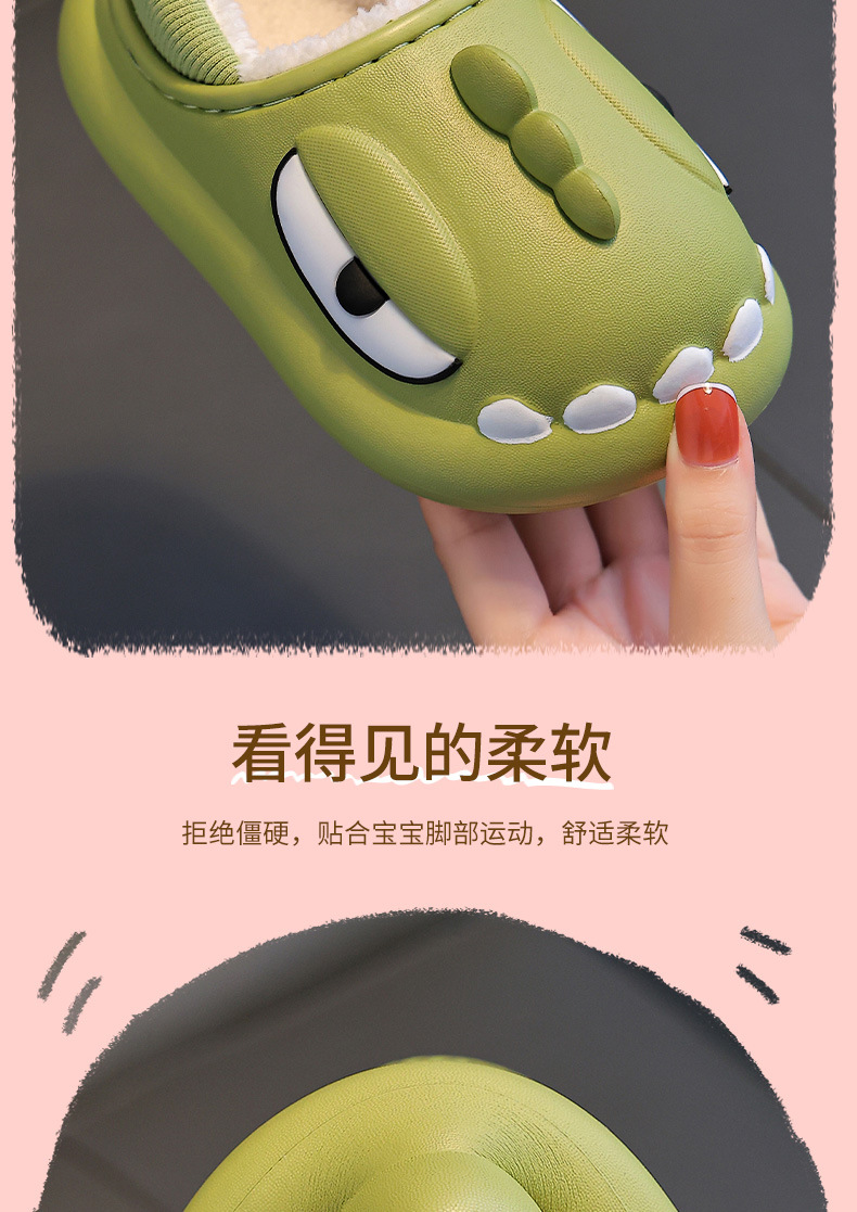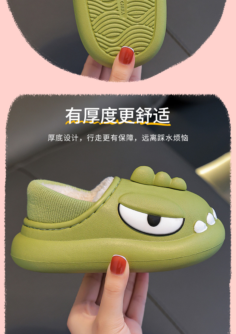 儿童棉拖鞋冬亲子EVA踩屎感男女童恐龙包跟宝宝防水保暖小孩棉鞋