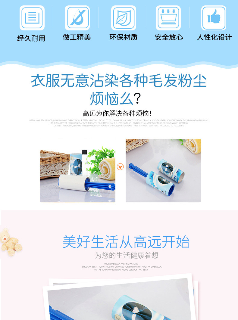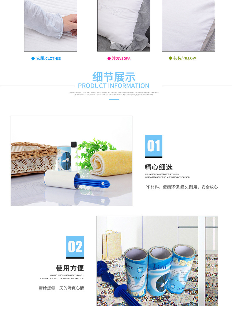 耐用滚筒式粘毛器家居迷你粘尘纸 可撕式衣服衣物除尘纸除毛刷