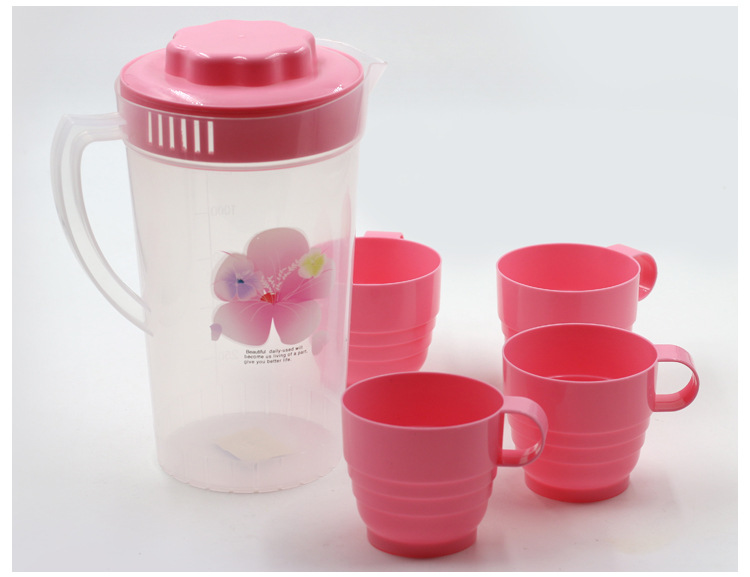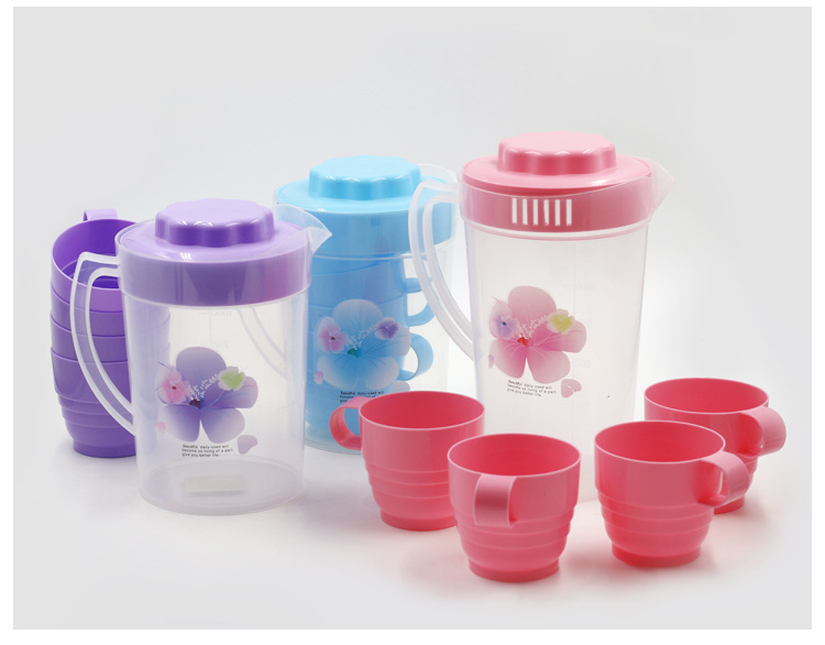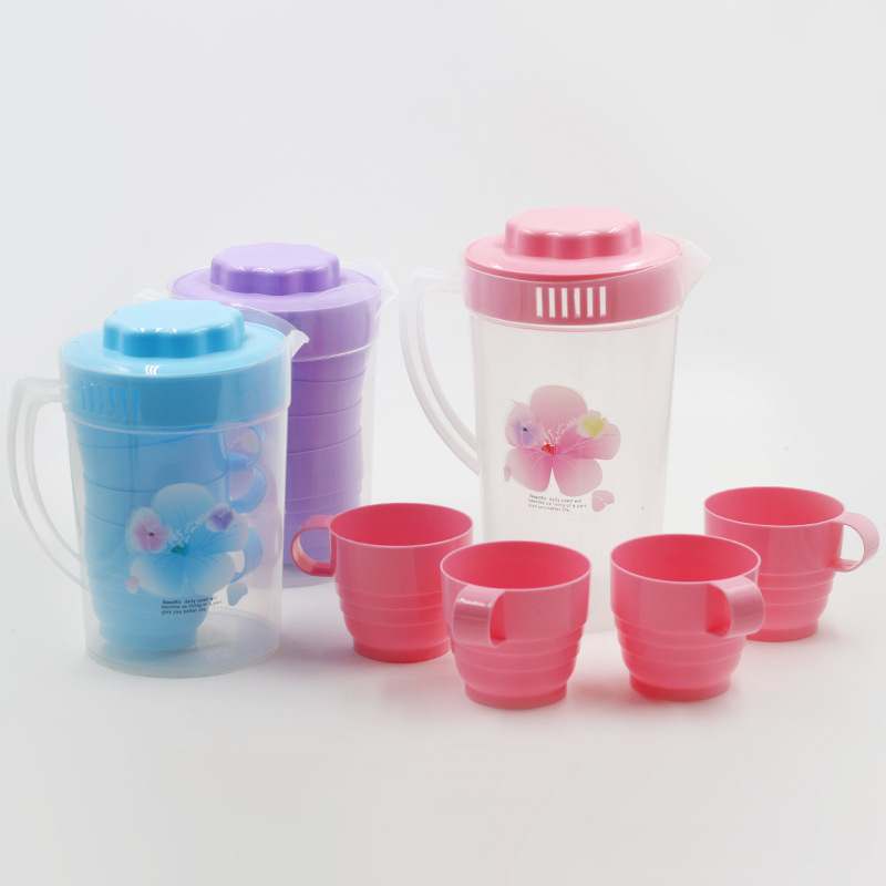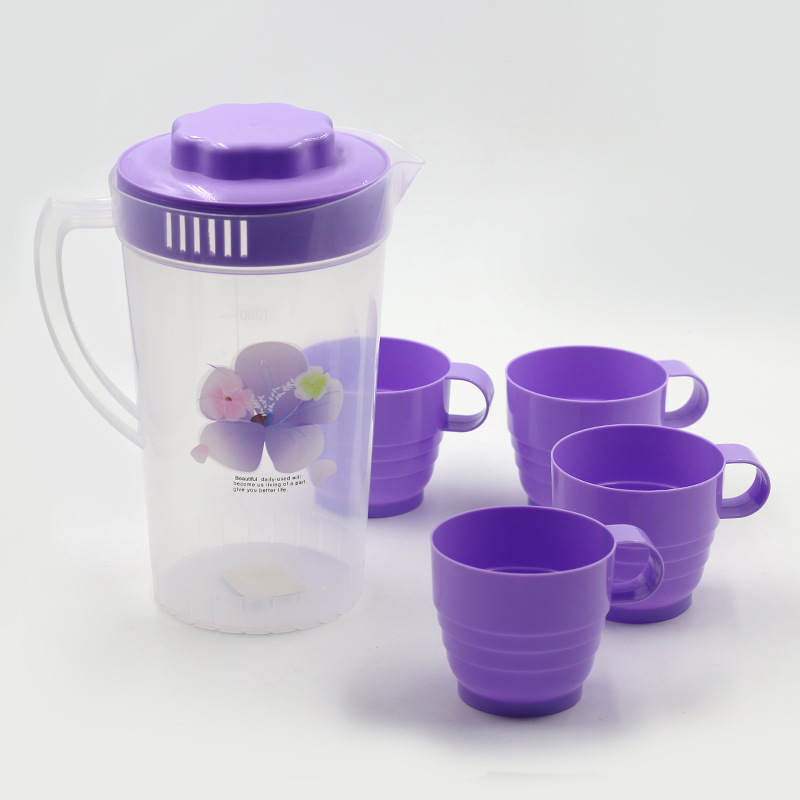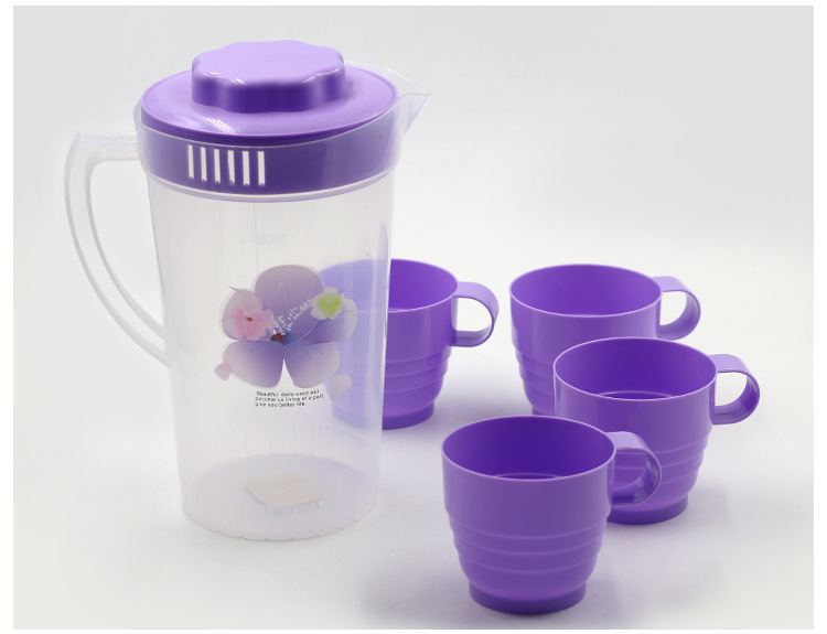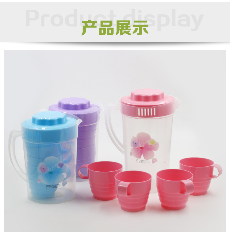 家用冷水壶2000ml茶壶水具套装带杯子塑料装水壶餐厅泡柠檬凉水壶