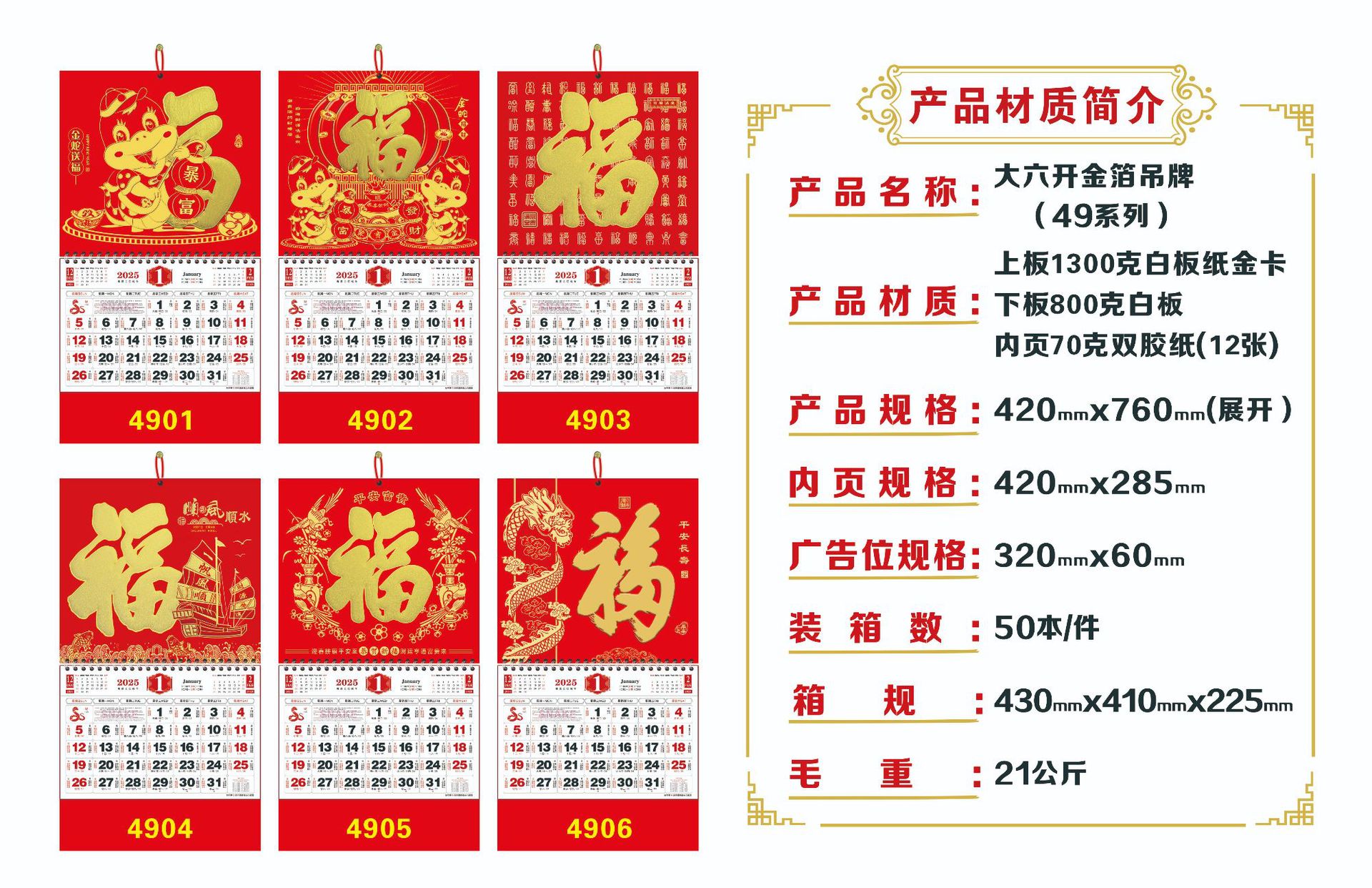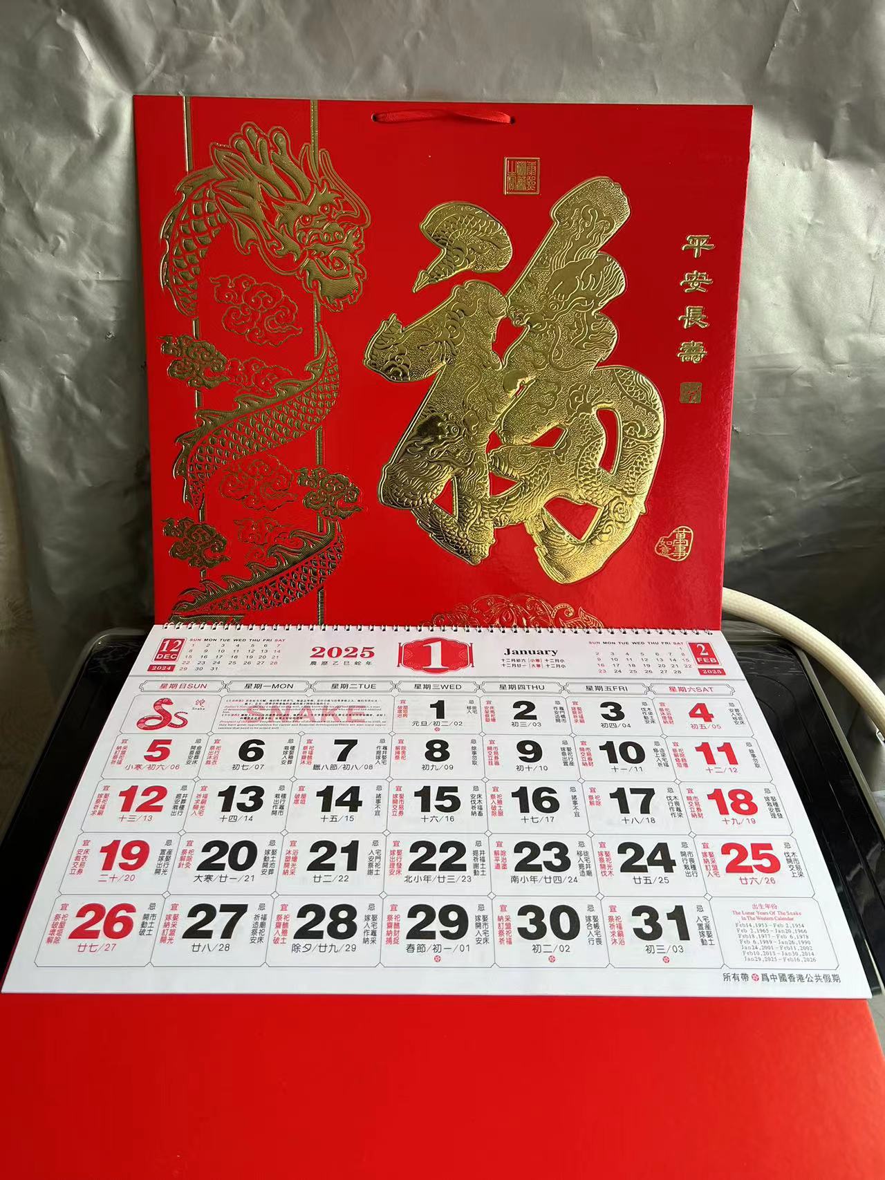 跨境蛇年2025中式吊牌大字挂历定 制公司logo企业信息月历年日历