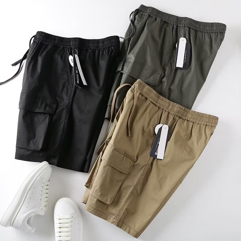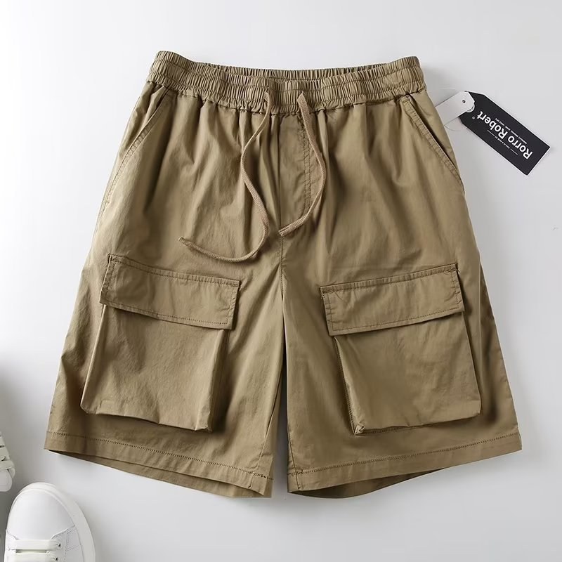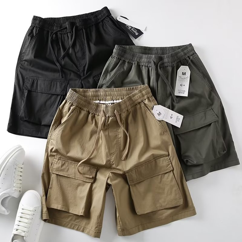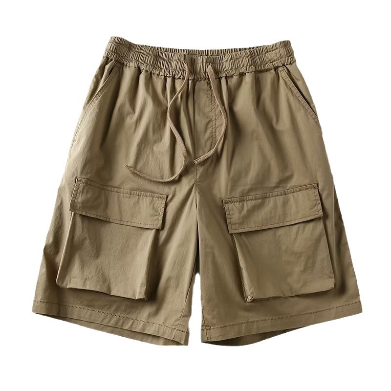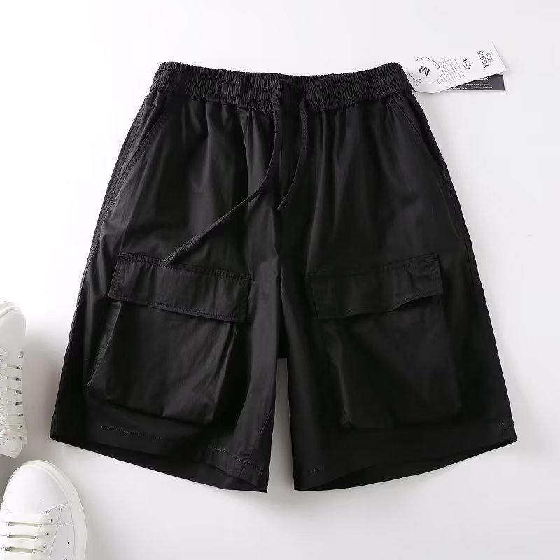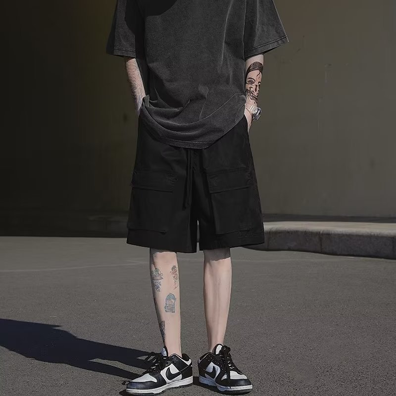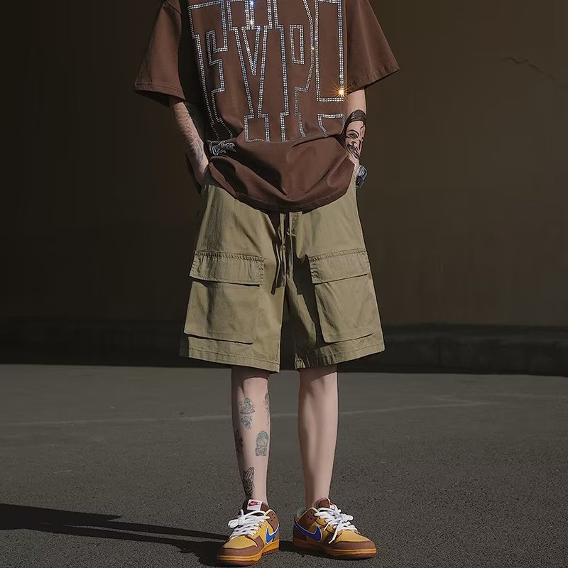 工装多口袋短裤男潮纯色宽松潮流百搭嘻哈运动抽绳男士休闲五分裤