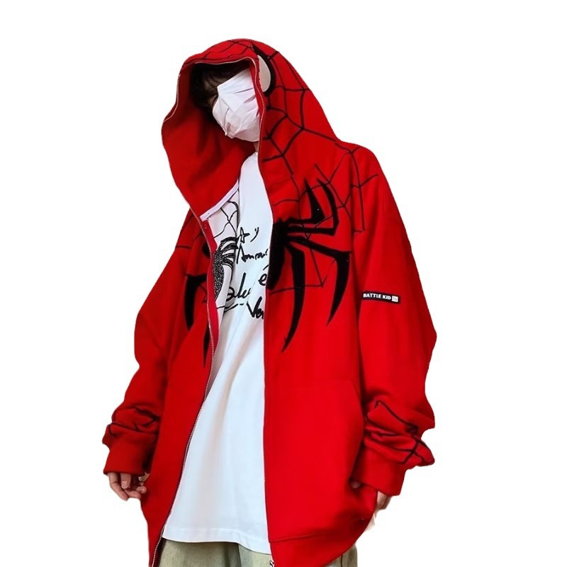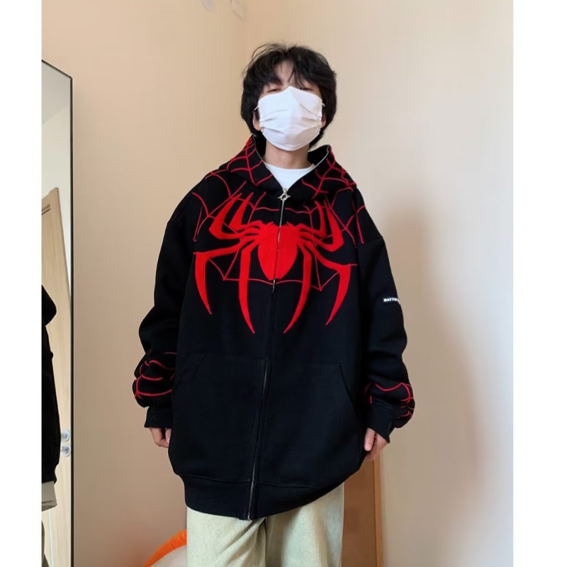 美式蜘蛛侠刺绣拉链开衫卫衣男女款秋季情侣oversize漫威英雄外套