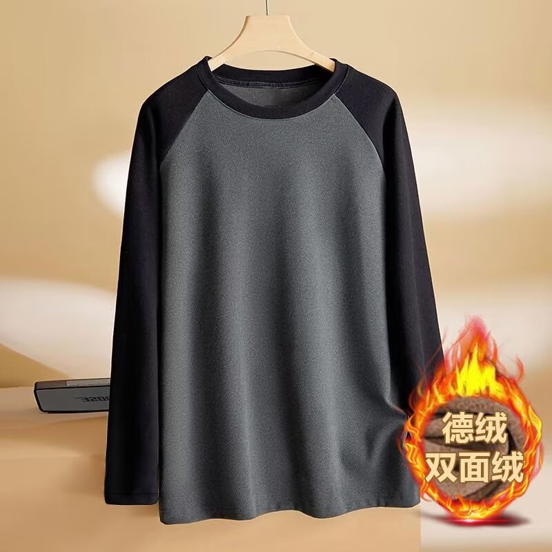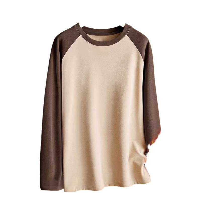 德绒长袖T恤男美式复古无性别学院风卫衣秋季新款撞色宽松打底衫