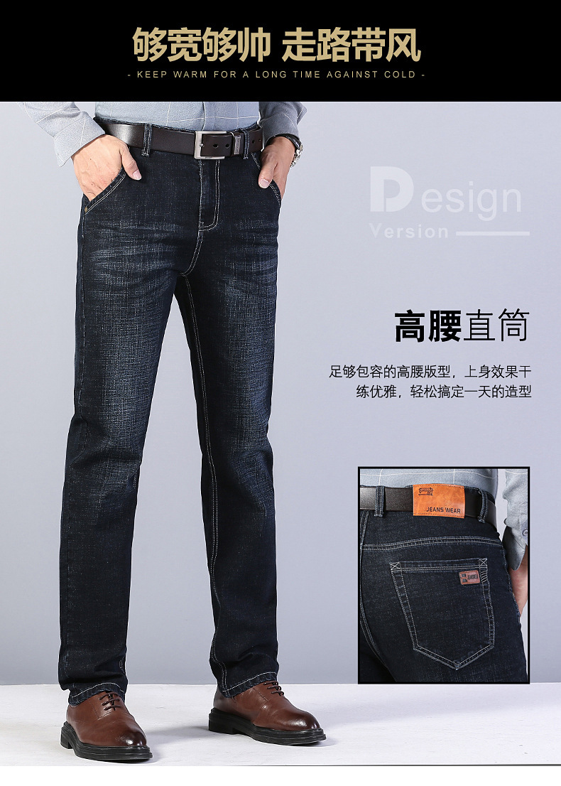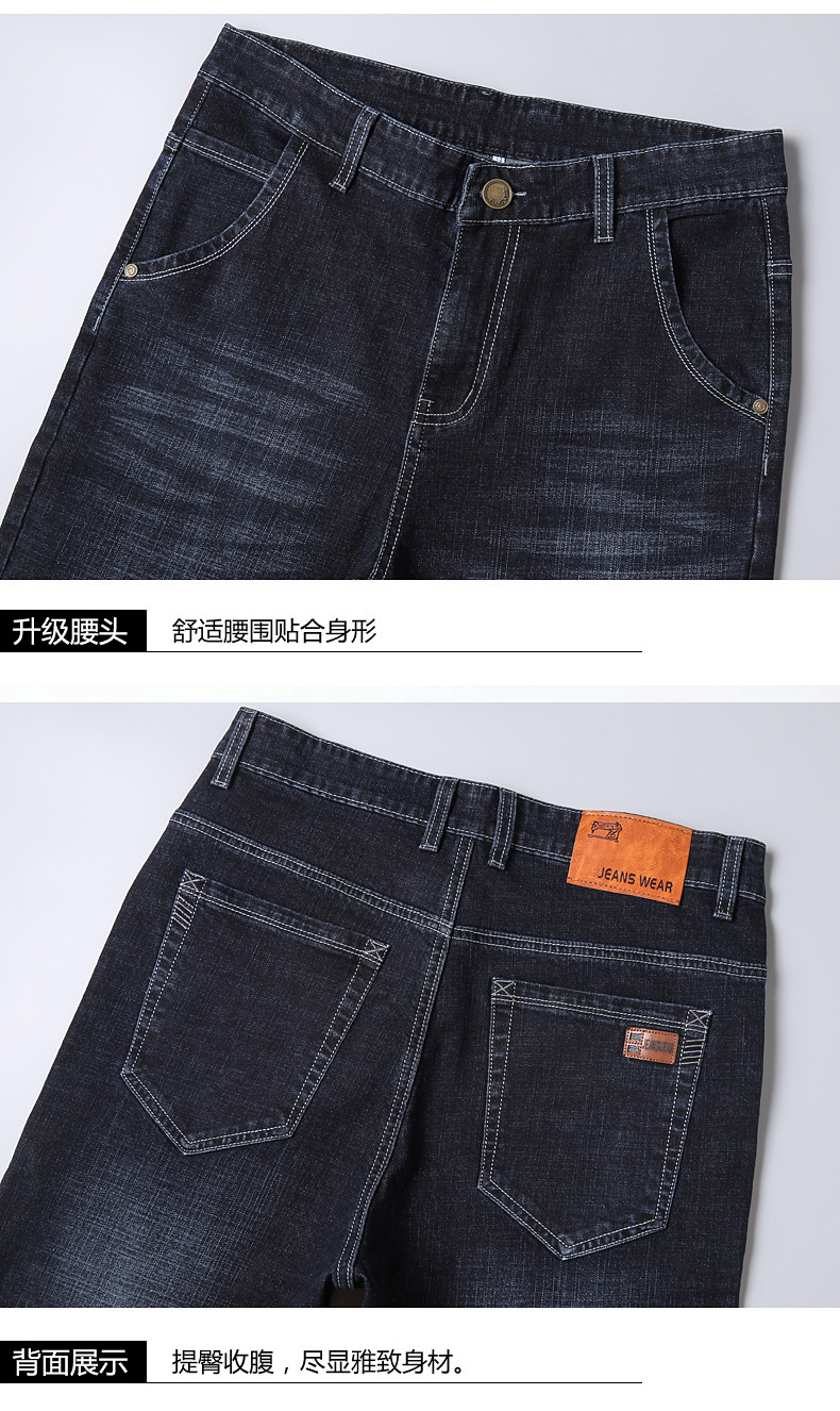 直筒牛仔裤男秋季宽松男装裤子简约中年免烫棉质休闲裤直筒裤男士