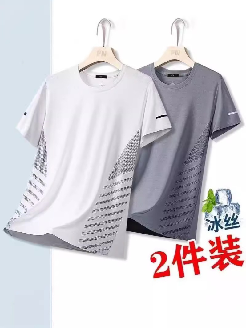 夏季新款冰丝t恤男运动休闲跑步健身透气短袖男士户外速干衣