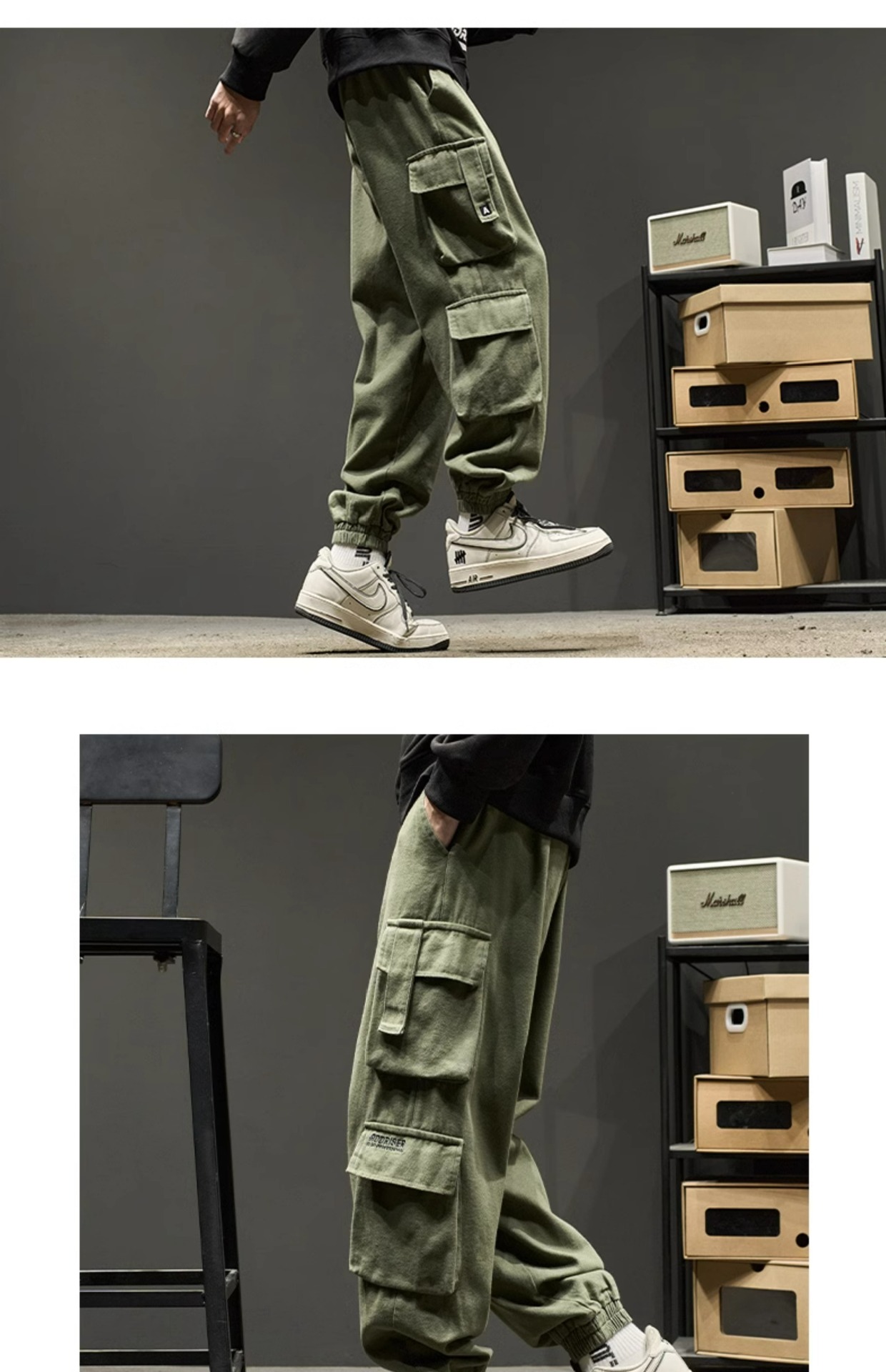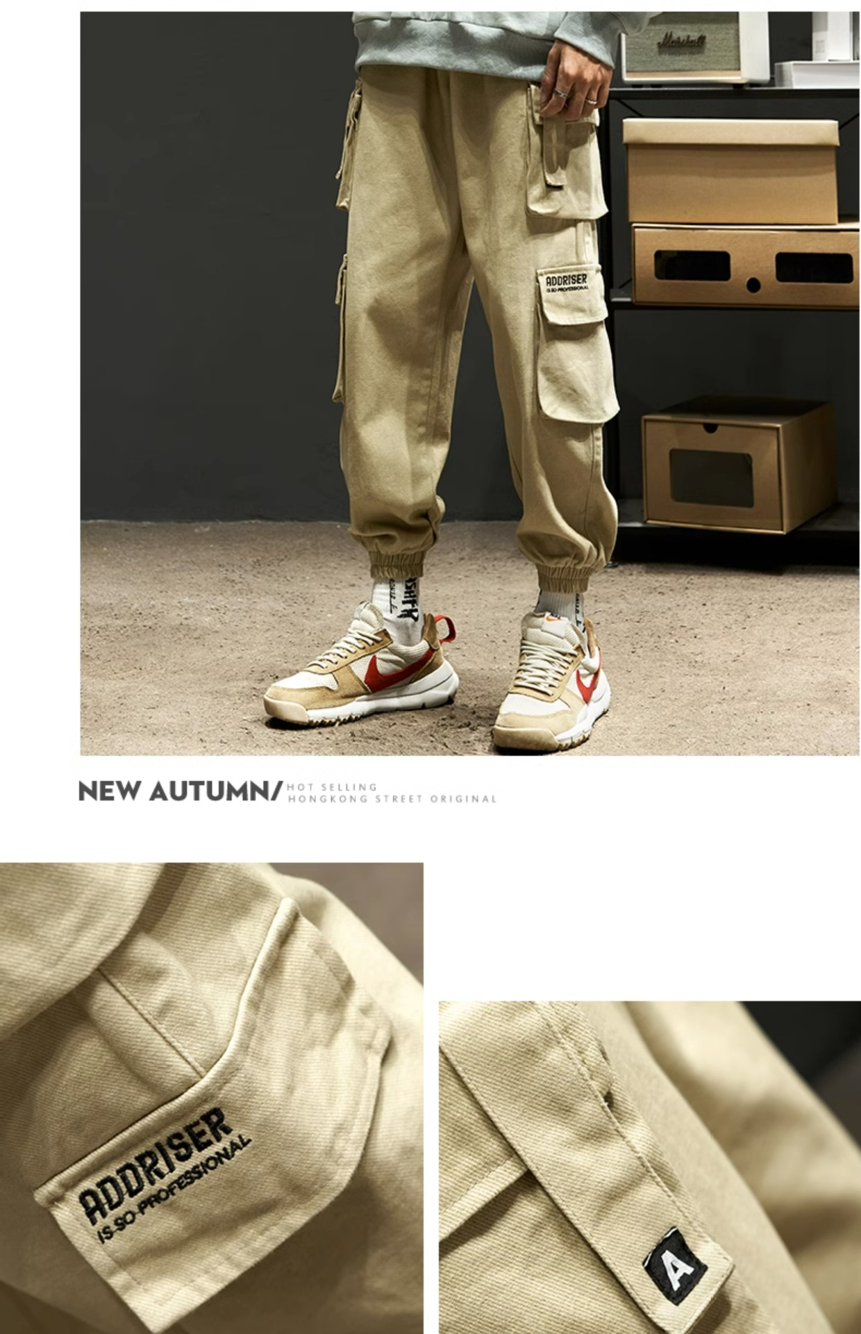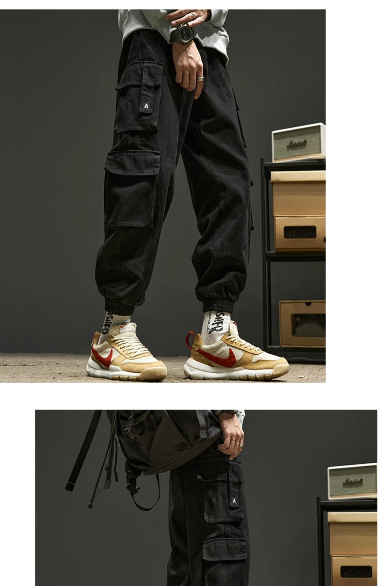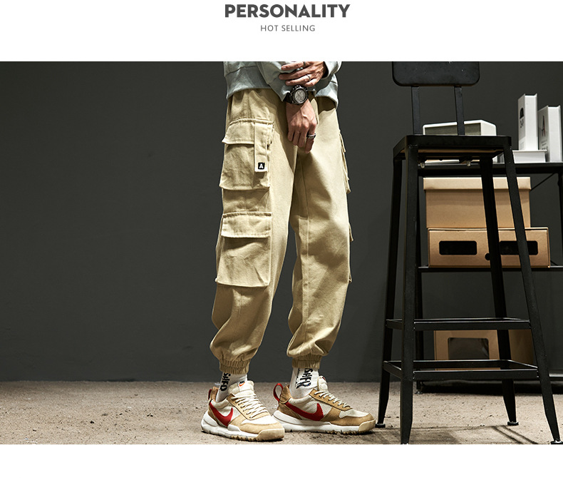 工装裤男春秋款宽松美式高街机能潮牌束脚多口袋休闲裤子男生秋季