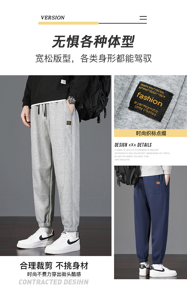 2024新款运动裤男春秋季百搭休闲纯棉长裤子青年宽松束脚运动裤子