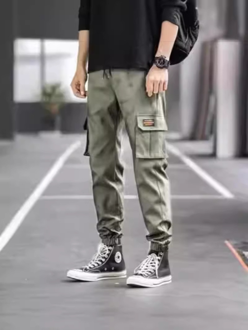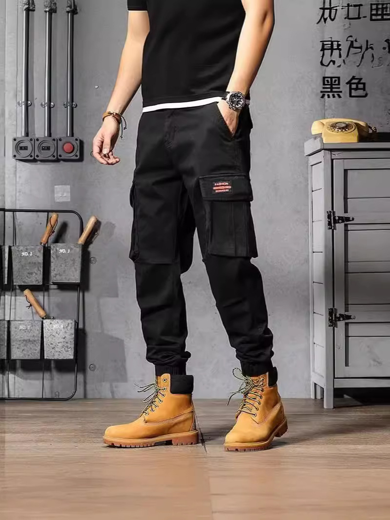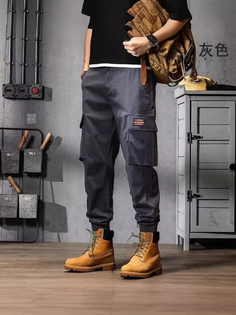 美式复古工装裤子男夏季薄款宽松直筒男士休闲裤阔腿束脚哈伦裤男